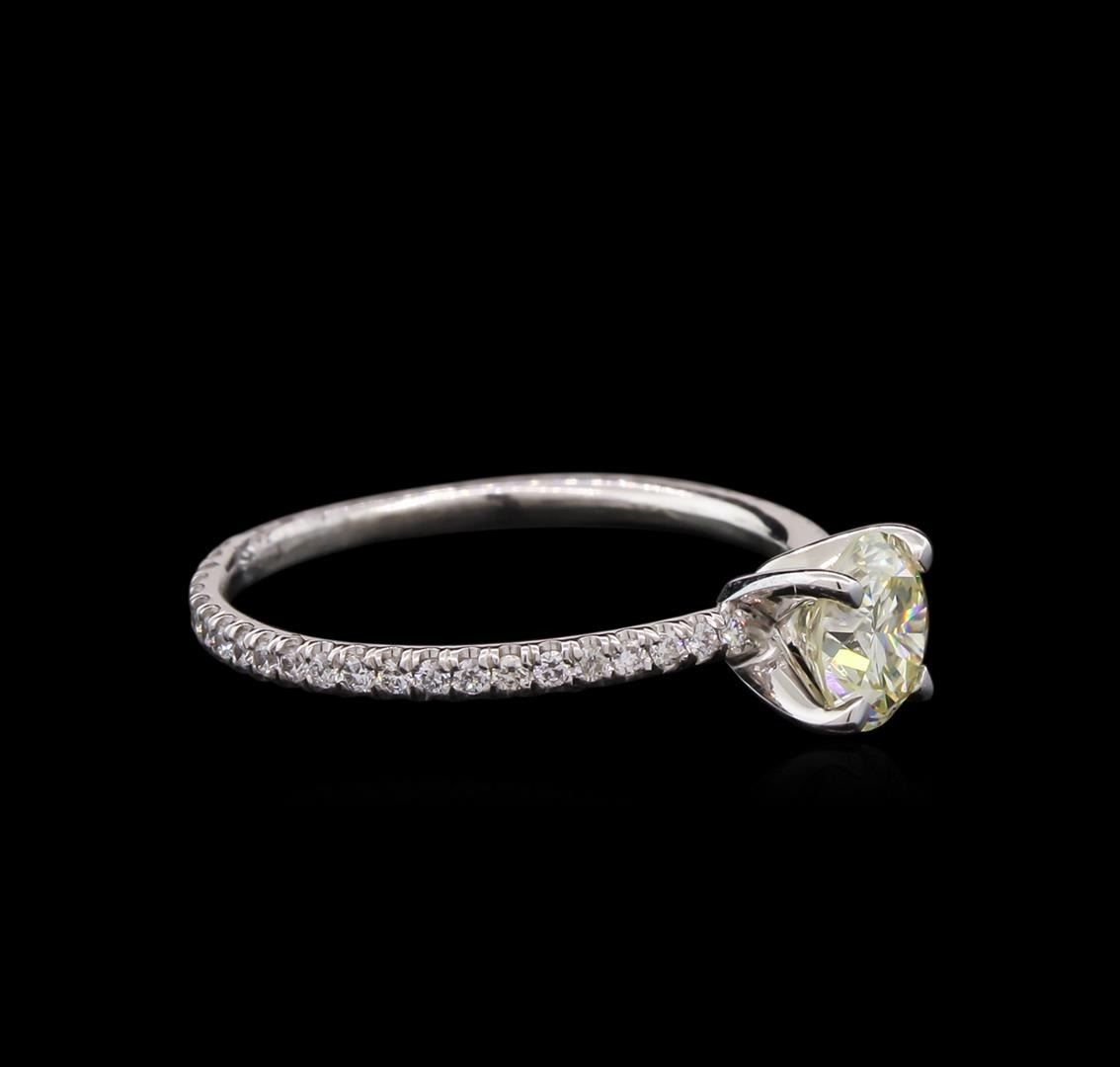 One electronically tested platinum lady's cast wedding ring with a bright polish finish. The featured lady's ring has a shank measuring 1.50 millimeters wide. Identified with markings of "PLAT". Condition is new, good workmanship. Containing: One prong set round brilliant cut diamond, measuring 5.74 - 5.72 x 3.65mm (depth est.) approximate weight of 0.76ct. Graded in the setting. Clarity: SI-1. Color: Good Forty-Eight split prong set round brilliant cut diamonds, measuring 1.10 - 1.05 x 0.70mm (depth est.) approximate total weight of 48 Stones = 0.24ct. Graded in the setting. Clarity: SI-1 to SI-2. Color: H - I. Cut Good. Total Weight of Diamonds 1.00ct. Total Weight of Ring 2.00gm. GAS Appraised at $7,065.00.
