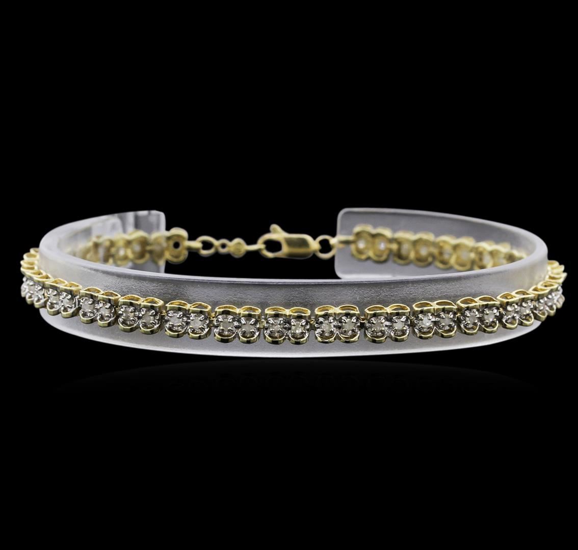 One tennis bracelet featuring: 10KT yellow gold weighing 5.40 grams containing pave set round diamonds with a total weight of 1.00ct.