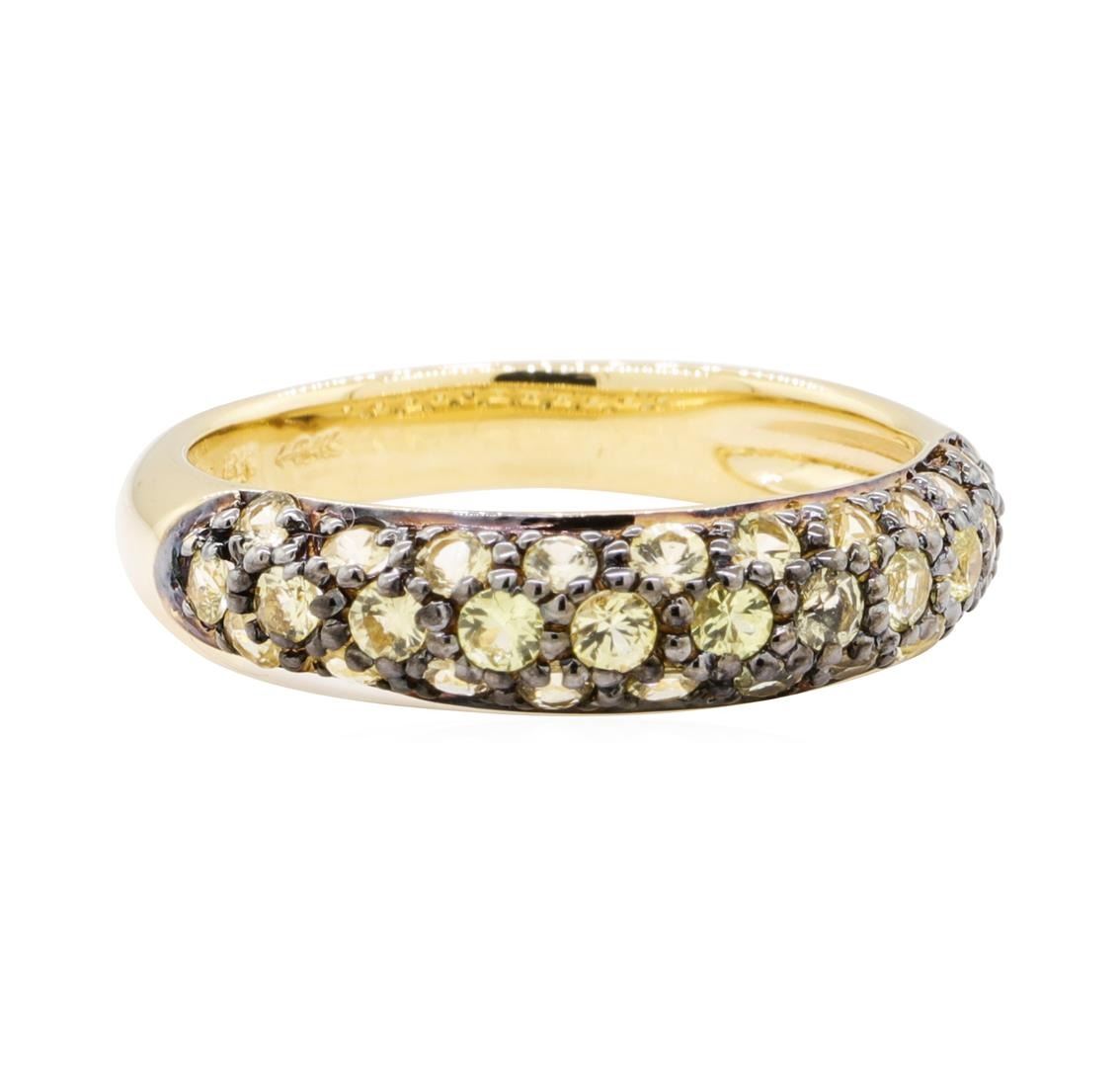 One lady's ring featuring: 18KT yellow gold weighing 3.8 grams containing greenish yellow sapphires weighing 1.00ctw.