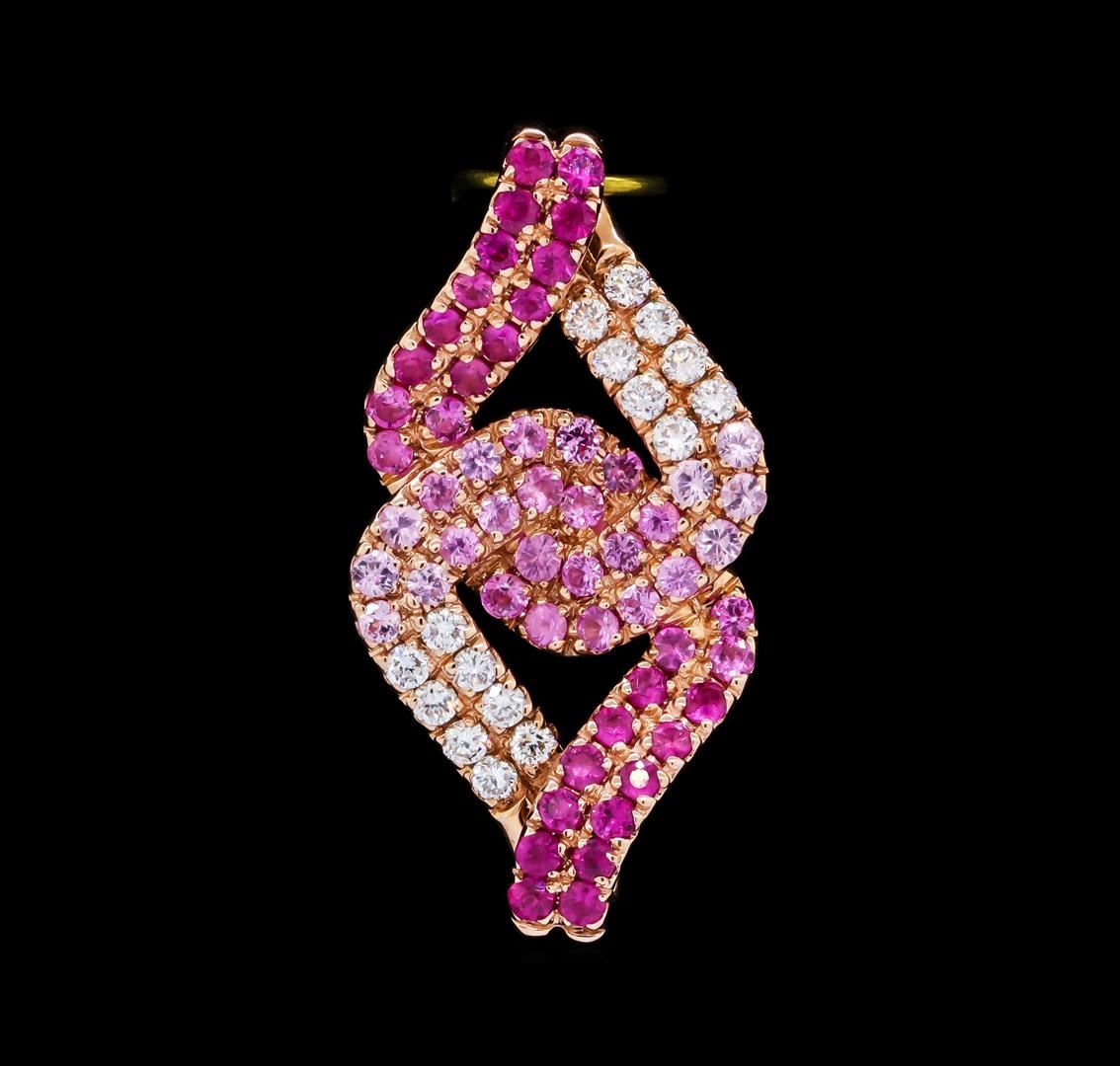 One pendant without chain featuring: 14KT rose gold weighing 2.3 grams containing pink sapphires weighing 1.00ct and diamonds weighing 0.25ctw.