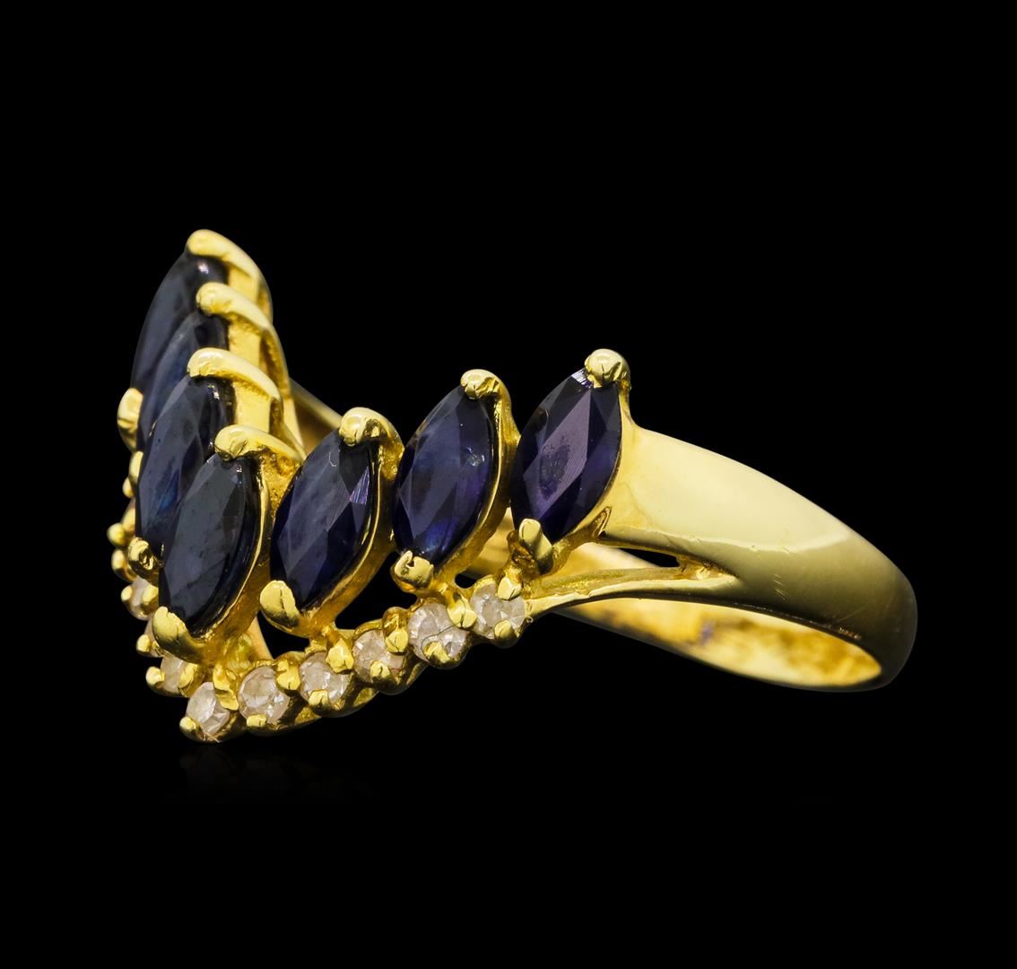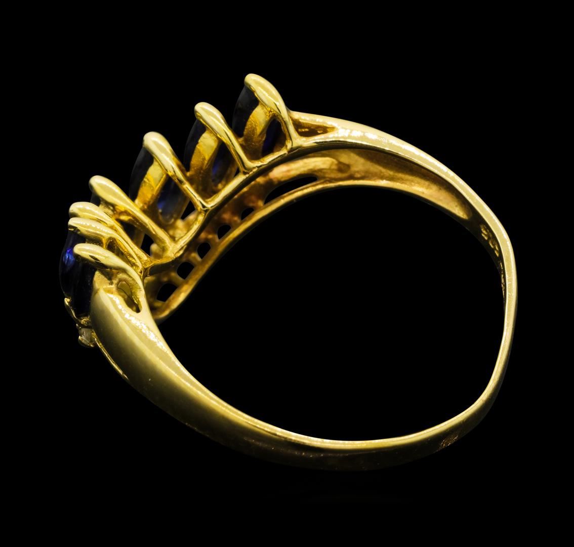 One electronically tested 14KT yellow gold lady's cast fashion chevron ring with a split shank with a bright polish finish. The featured lady's ring has a shank measuring 1.80 millimeters wide. Identified with markings of '14K 585'. Condition is used, goo GAS Appraised at $745.00.