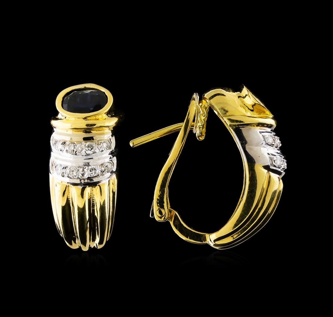One pair of earrings featuring: 18KT yellow and white gold weighing 9.80 grams containing sapphires weighing 1.00ctw and diamonds weighing 0.10ctw.