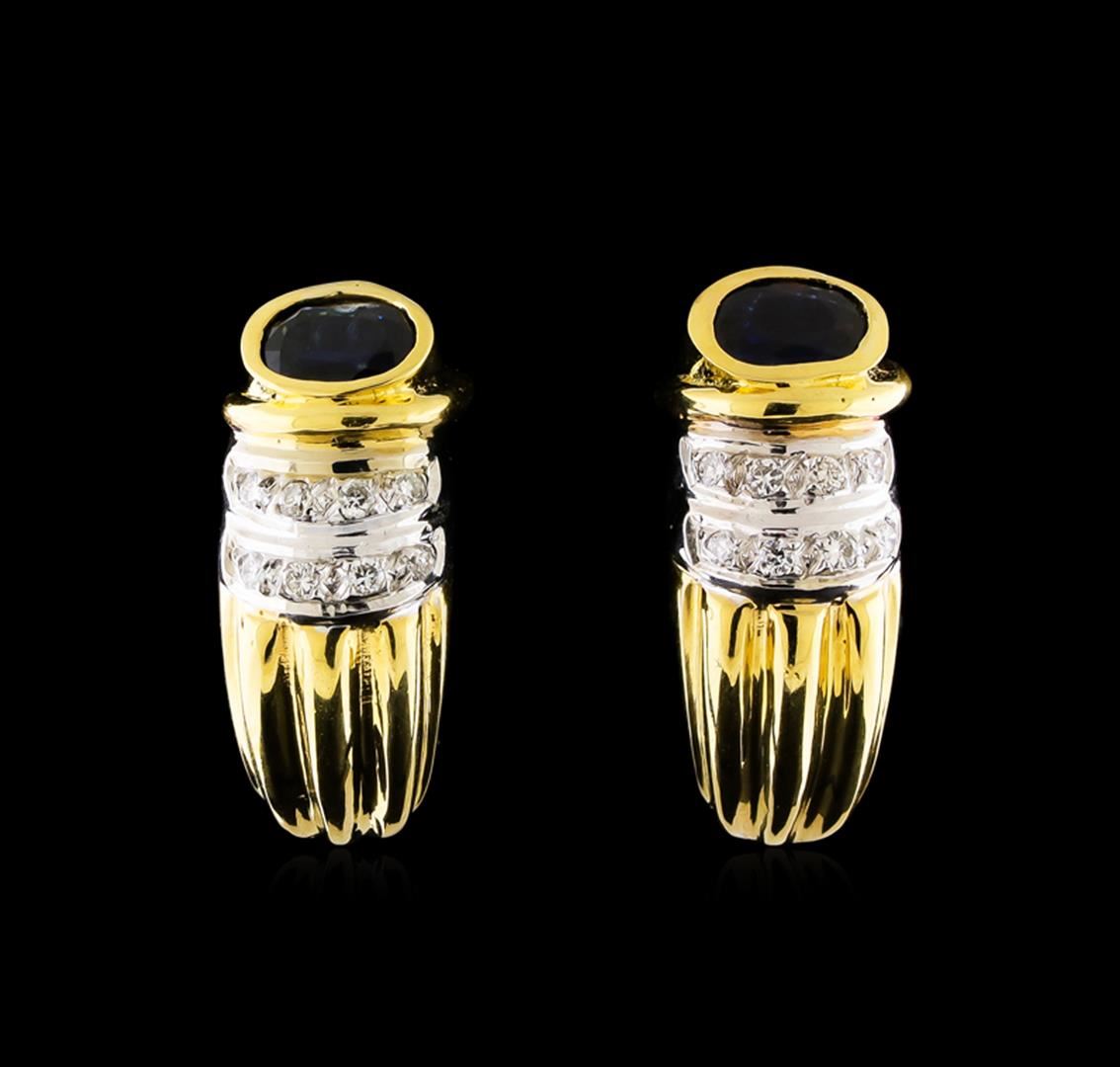 One pair of earrings featuring: 18KT yellow and white gold weighing 9.80 grams containing sapphires weighing 1.00ctw and diamonds weighing 0.10ctw.
