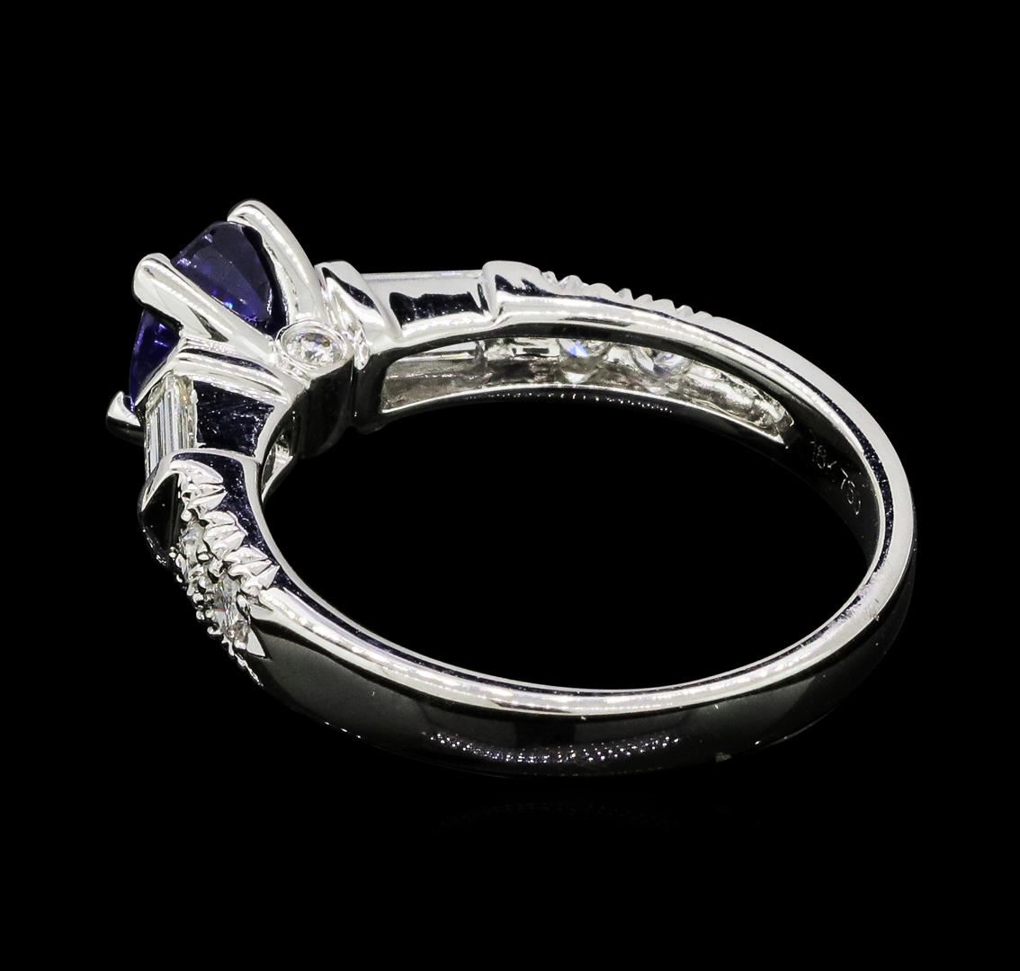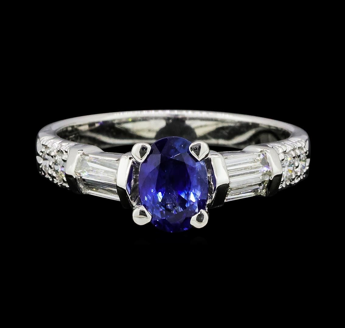 One lady's ring featuring: 18KT white gold weighing 4.6 grams containing one sapphire weighing 1.00ct and diamonds weighing 0.80ctw.