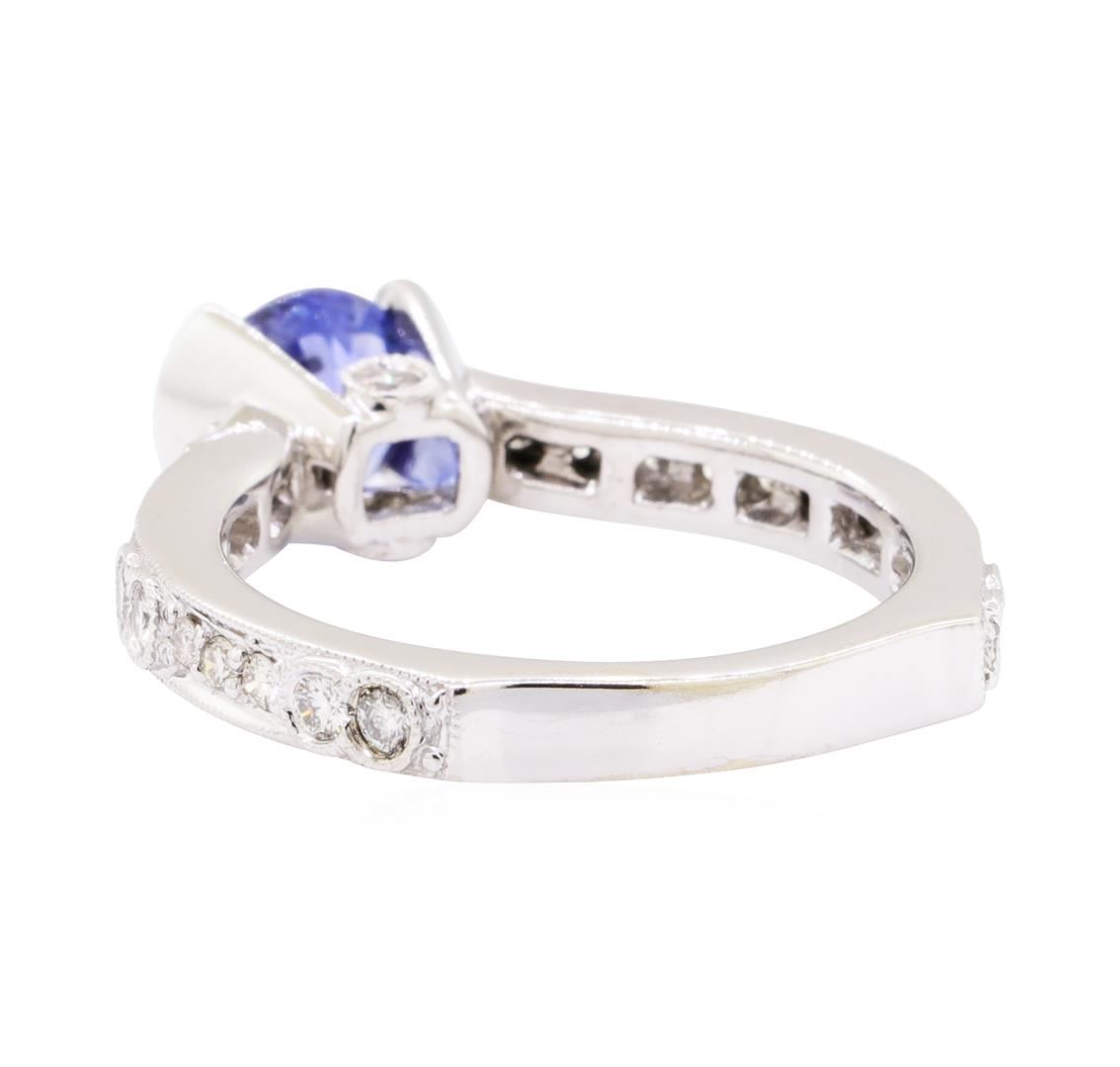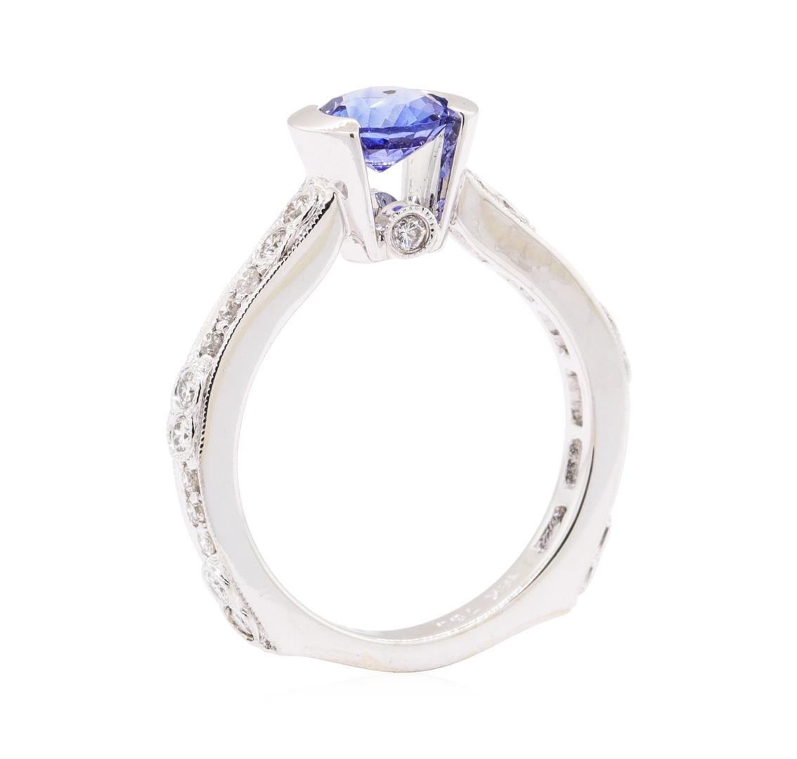 One lady's ring with a Euro shank featuring: 18KT white gold weighing 5.5 grams containing one half-bezel set center sapphire weighing 1.00ct and diamonds weighing 0.45ctw.
