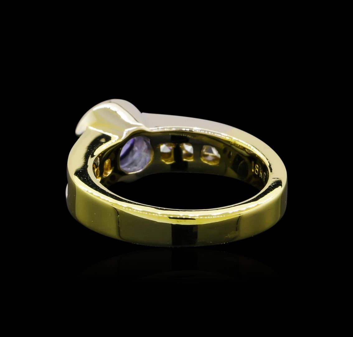 One ring featuring: 18KT yellow gold weighing 8.86 grams containing one tanzanite center weighing 1.00ct and diamonds weighing 0.60ctw.