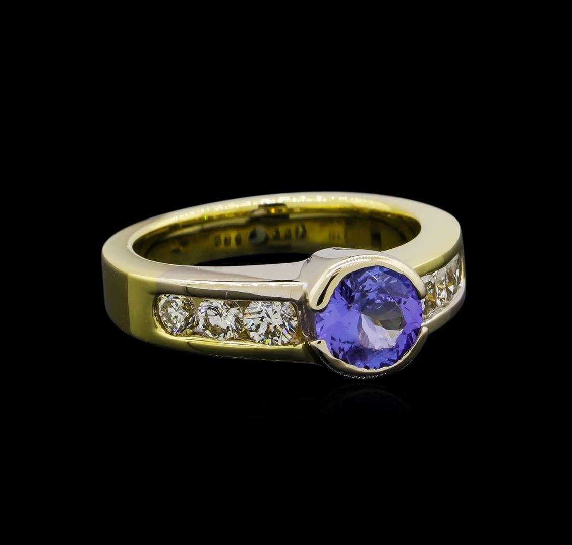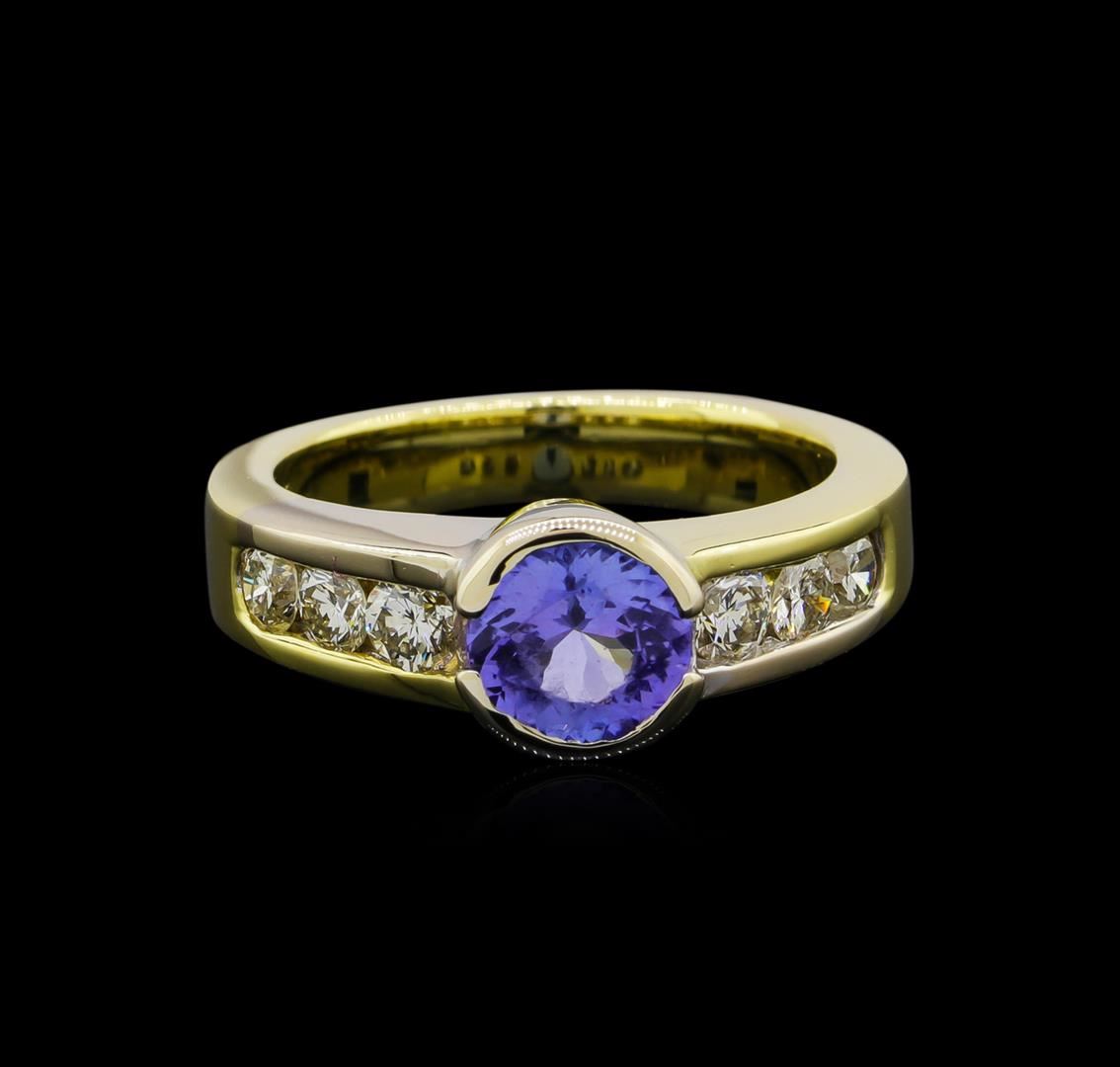 One ring featuring: 18KT yellow gold weighing 8.86 grams containing one tanzanite center weighing 1.00ct and diamonds weighing 0.60ctw.
