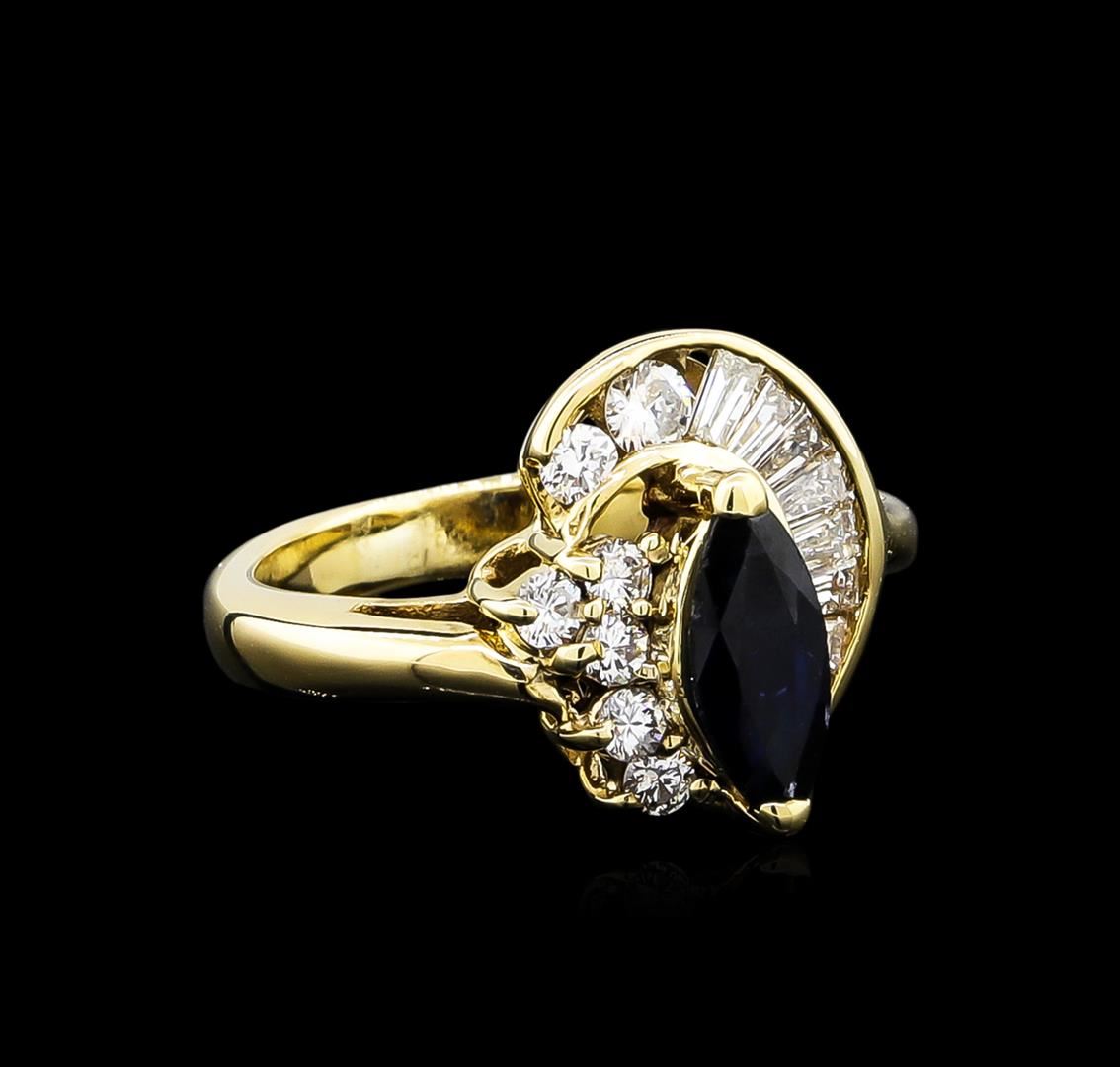 One ring featuring: 14KT yellow gold weighing 4.62 grams containing one blue sapphire with a total weight of 1.00ct and side diamonds with a total weight of 0.65ct.