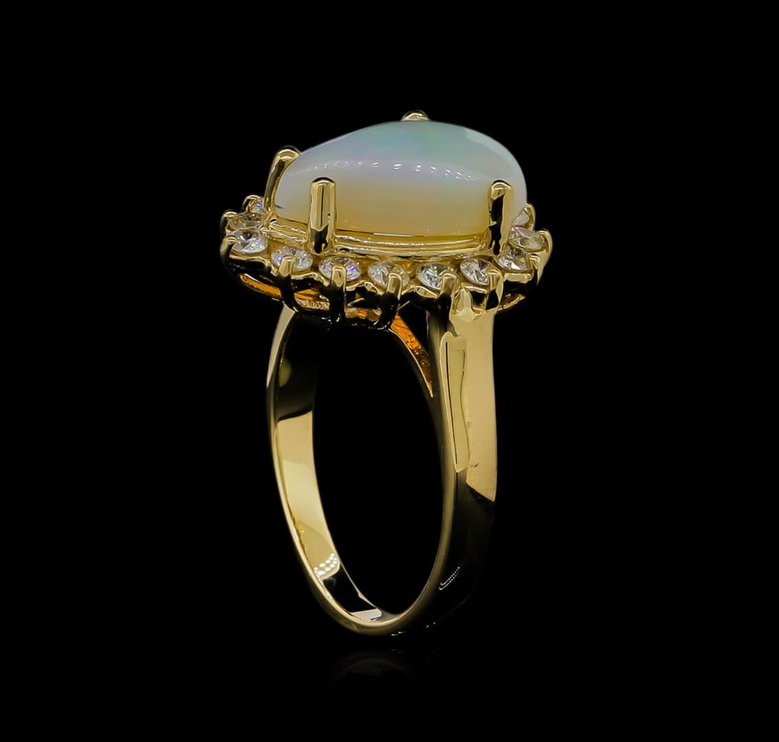 One ring featuring: 14KT yellow gold weighing 5.69 grams containing one opal with a total weight of 1.00ct and side diamonds with a total weight of 0.68ct.