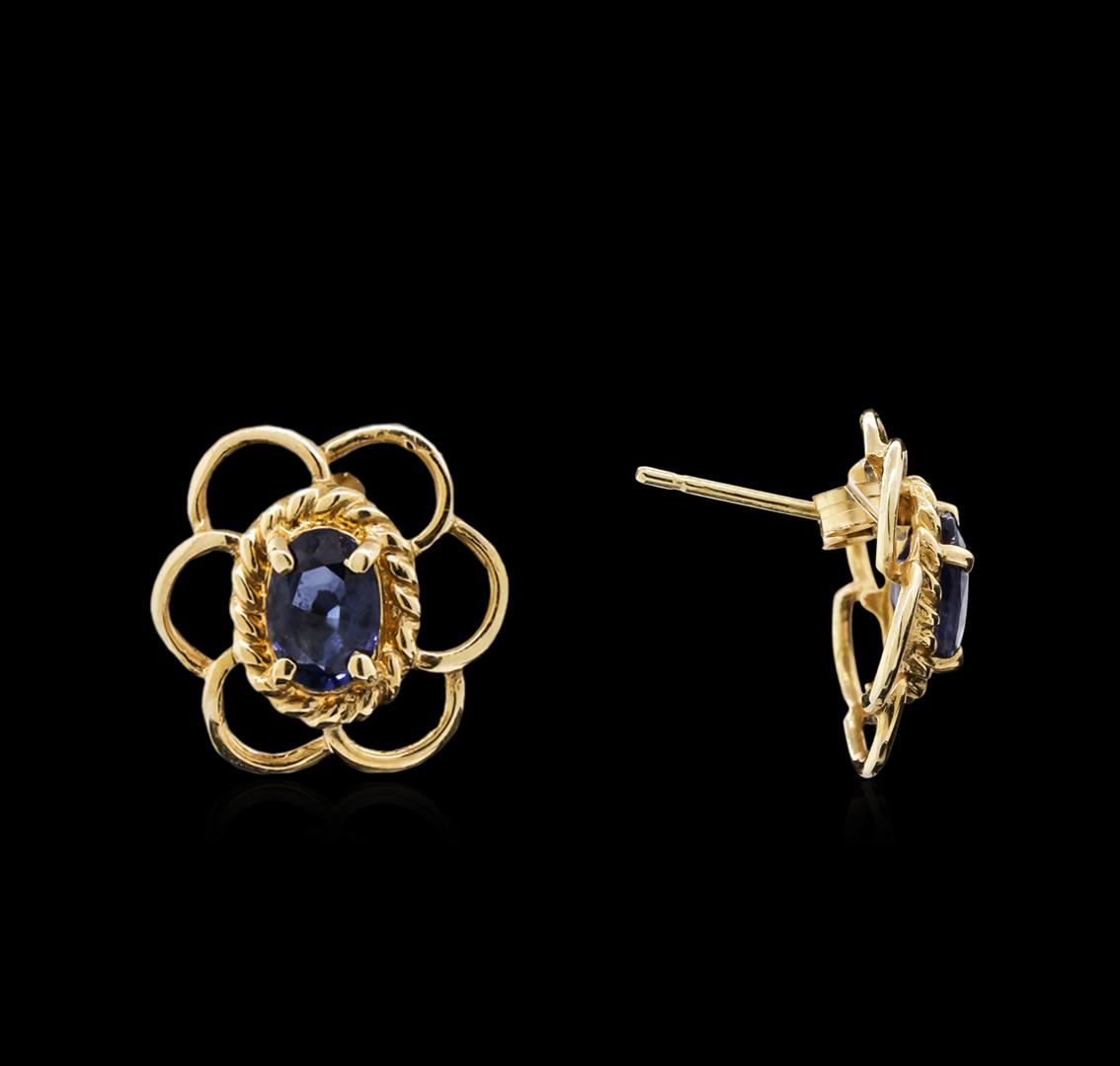 1.00ctw Blue Sapphire and Diamond Earrings - 14KT Yellow Gold. 1.8 grams total weight; sapphires are .50 ct each ; 1 ct total.