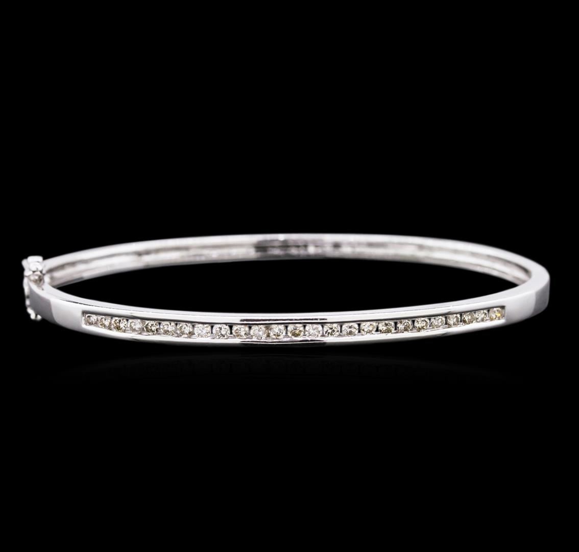 One bangle bracelet featuring: 14KT white gold weighing 7.60 grams containing 25 brilliant cut diamonds with a total weight of 1.00ct.