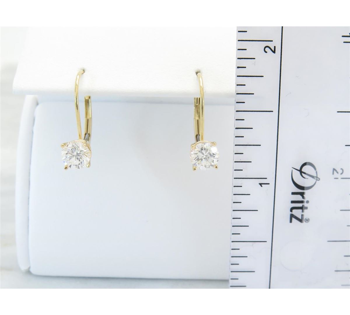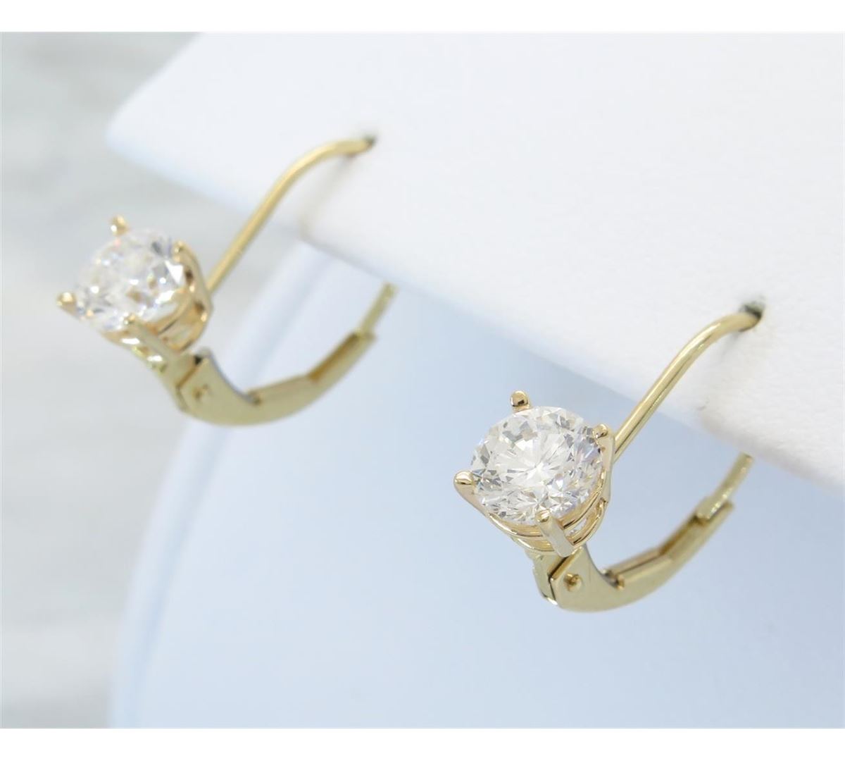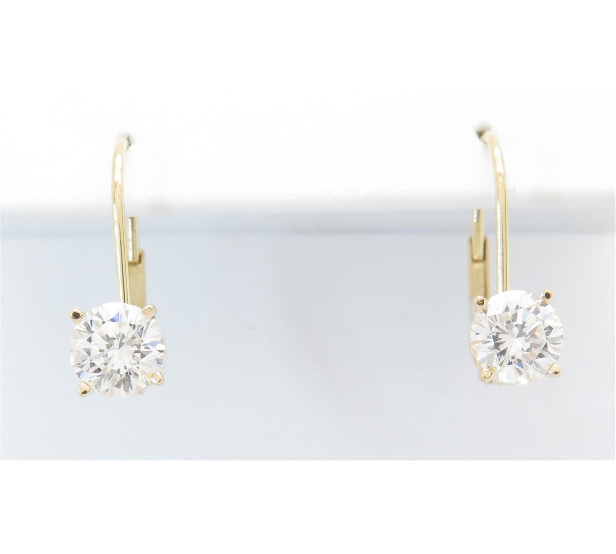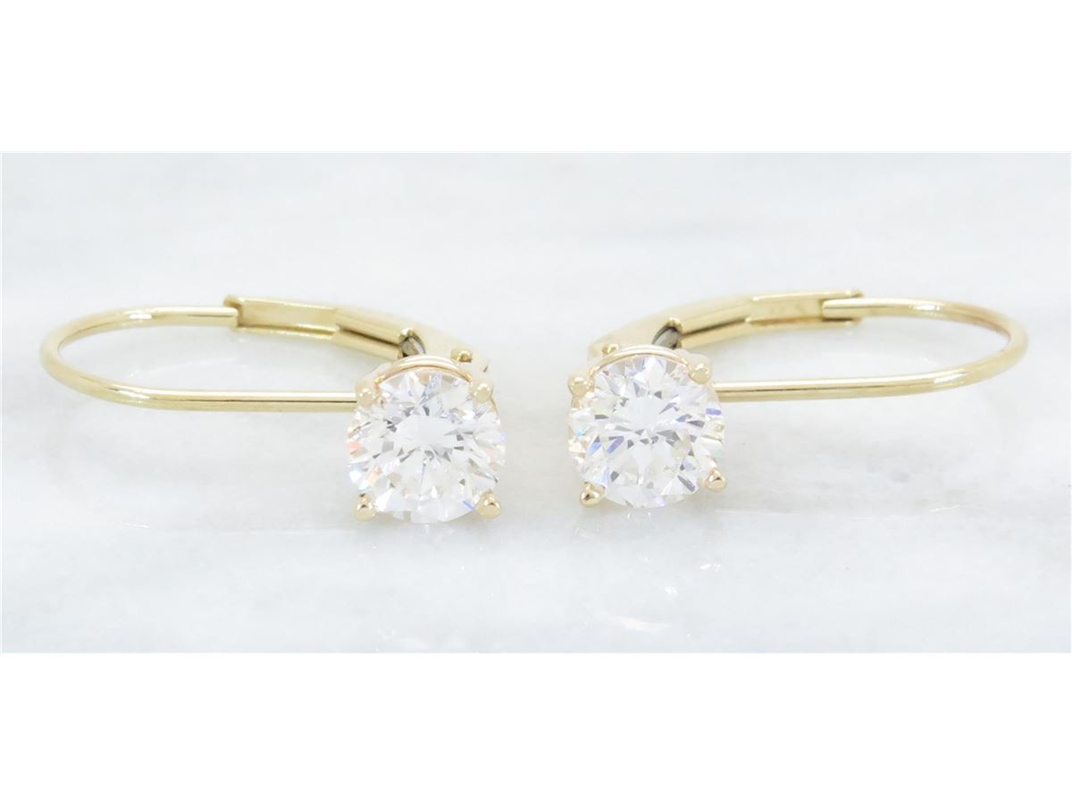 One tested 14K yellow gold pair of diamond earrings. Containing: Two Round Brilliant Cut Diamonds. Clarity: I1, Color: G-H. Approximate total diamond weight: 1.00CTW. Diamonds are graded in the mounting, unless otherwise stated. Weight: 1.4 grams.