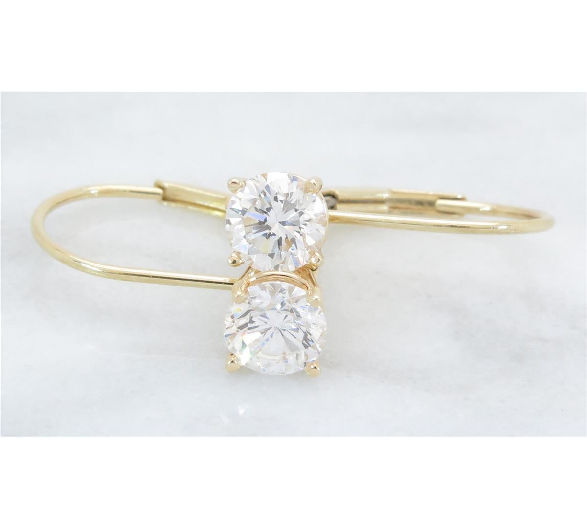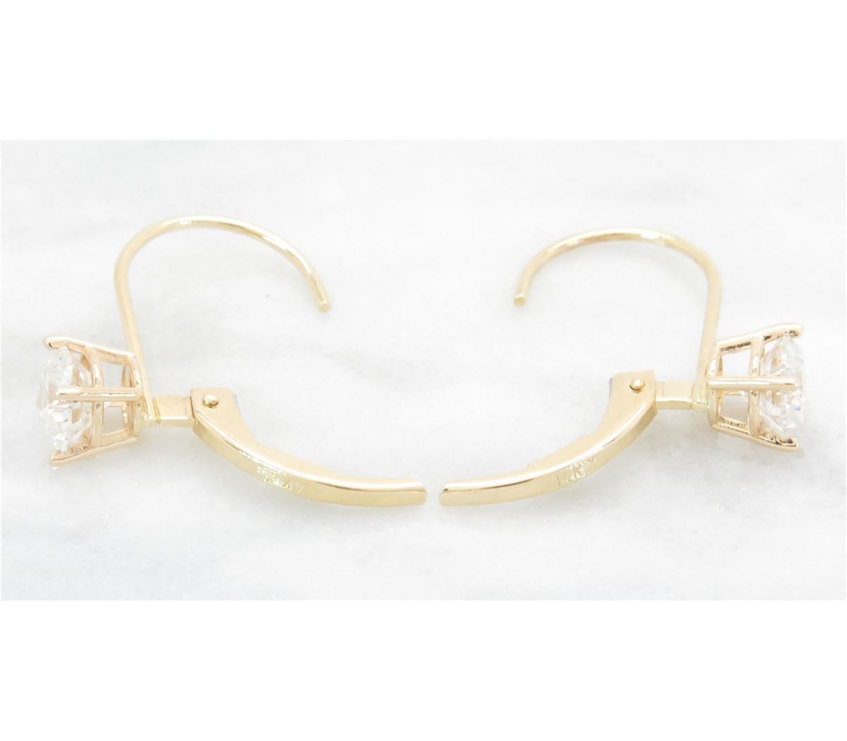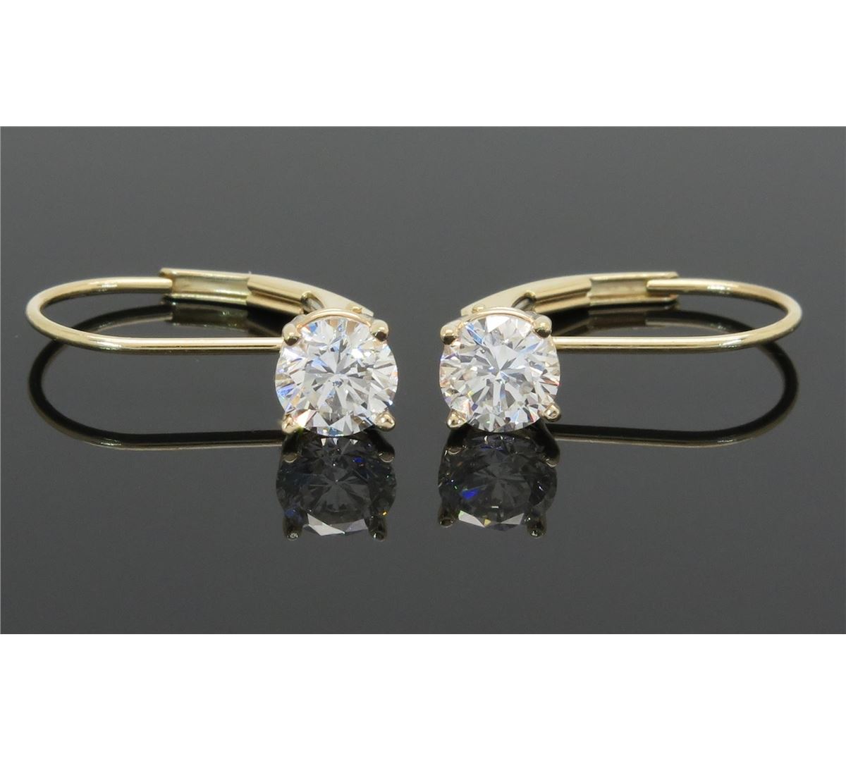 One tested 14K yellow gold pair of diamond earrings. Containing: Two Round Brilliant Cut Diamonds. Clarity: I1, Color: G-H. Approximate total diamond weight: 1.00CTW. Diamonds are graded in the mounting, unless otherwise stated. Weight: 1.4 grams.
