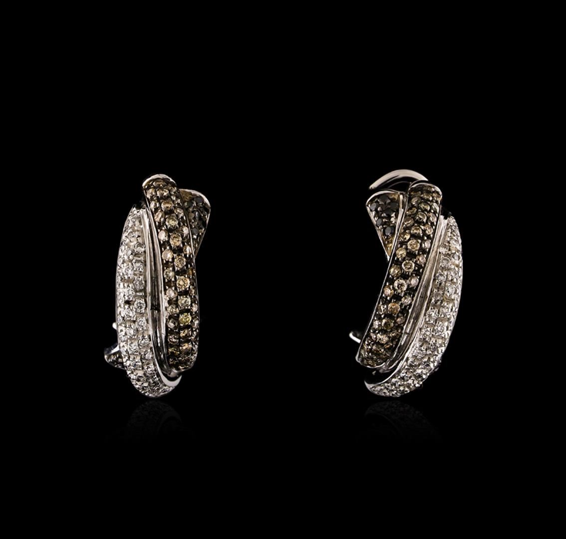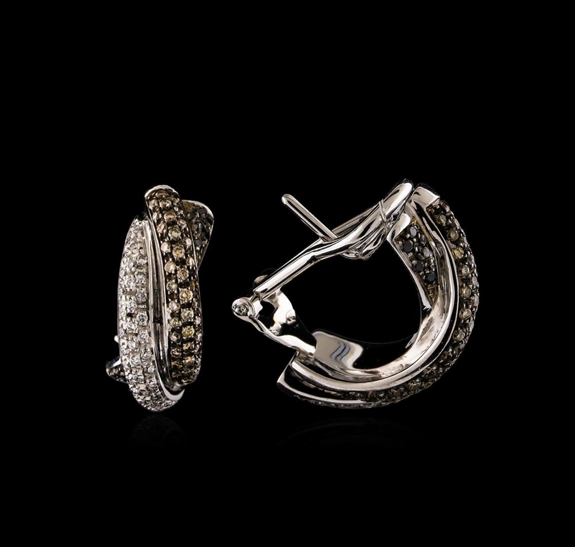 One pair of earrings featuring: 18KT white gold weighing 13.20 grams containing black, brown, and white diamonds with an approximate total diamond weight of 1.00ct.
