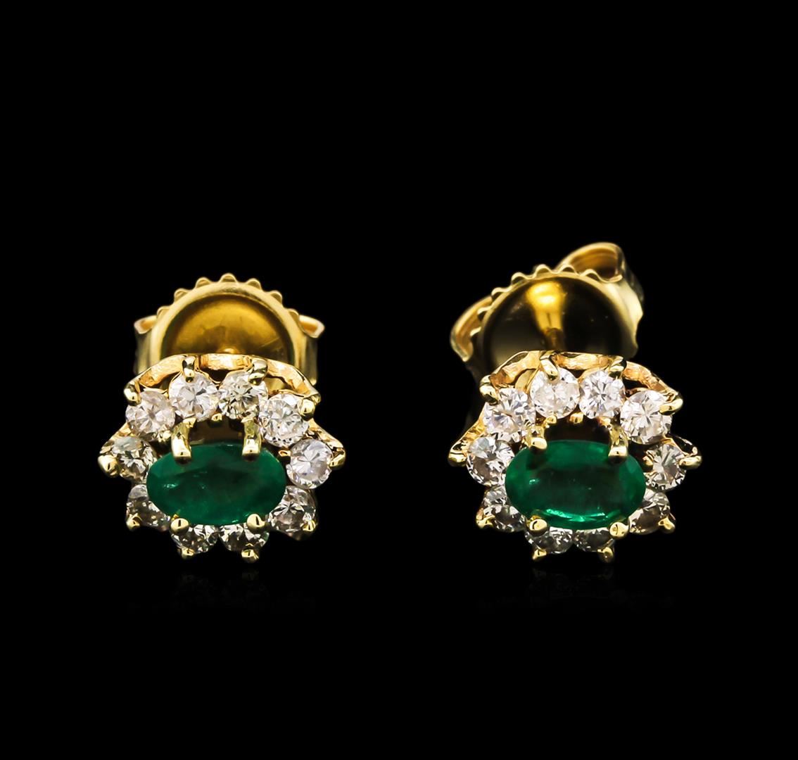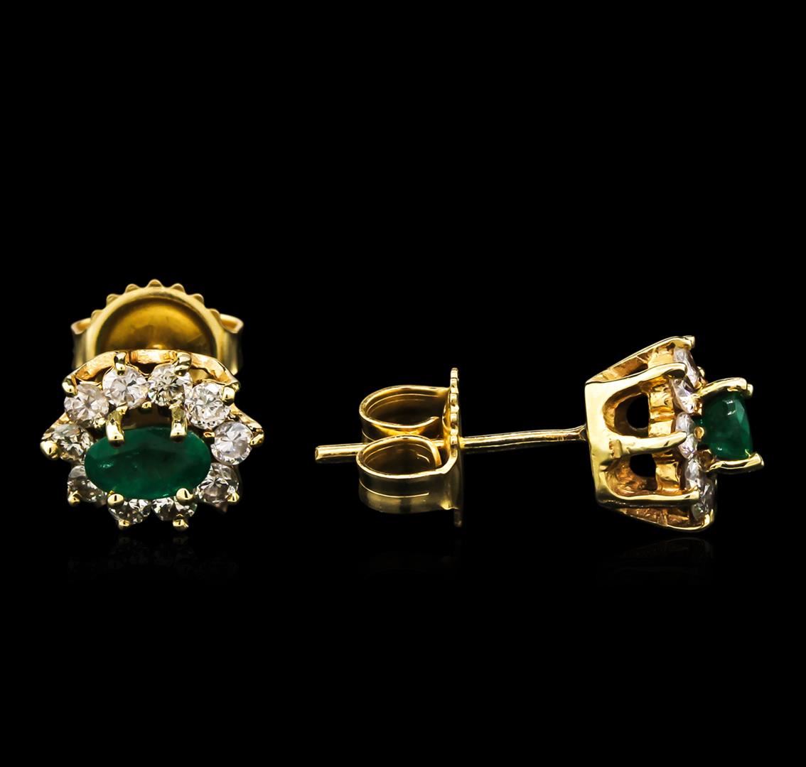 One pair of earrings featuring: 14KT yellow gold weighing 2.02 grams containing two emeralds with a total weight of 1.00ct and diamonds with a total weight of 0.30ct.