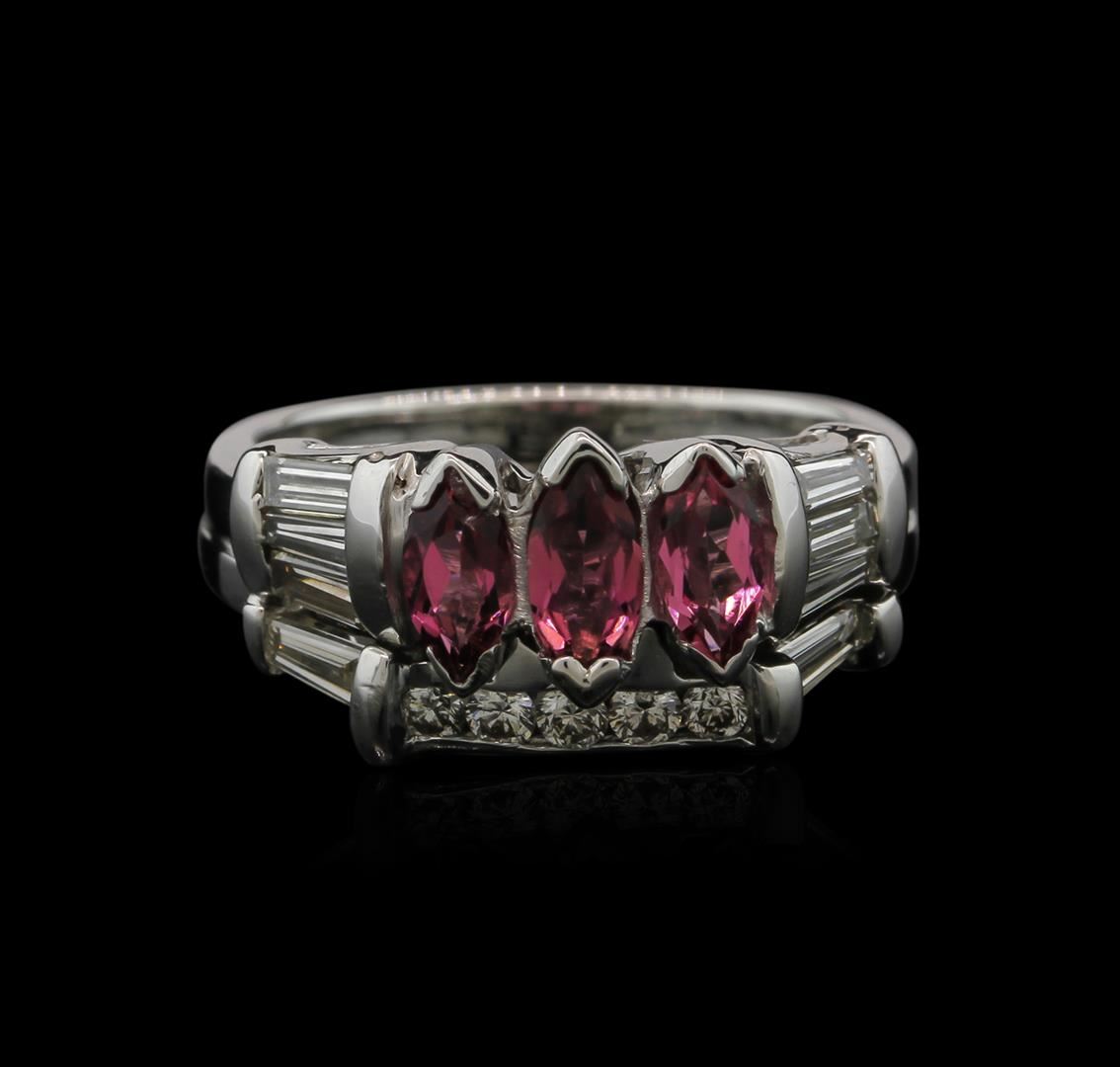One ring featuring: 14KT white gold weighing 6.67 grams containing three pink tourmaline with a total weight of 1.00ct and diamonds with a total weight of 0.50ct.