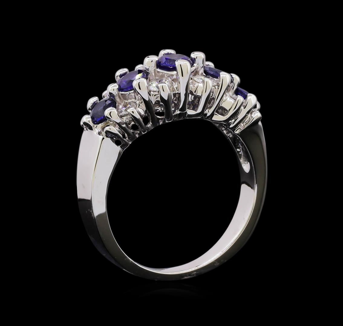 One ring featuring: 14KT white gold weighing 6.06 grams containing five blue sapphire center stones with a total weight of 1.01ct and diamonds with a total weight of 0.49ct.