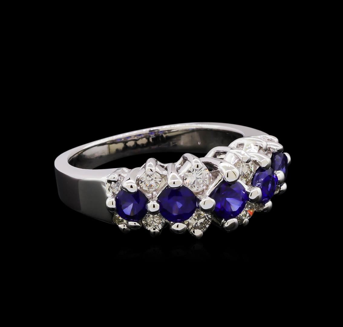 One ring featuring: 14KT white gold weighing 6.06 grams containing five blue sapphire center stones with a total weight of 1.01ct and diamonds with a total weight of 0.49ct.