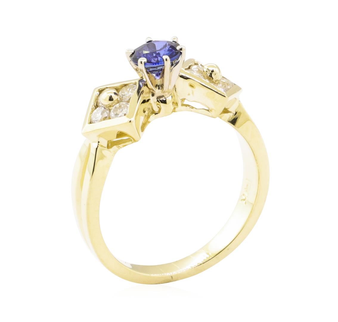 One ring featuring: 14KT yellow gold weighing 4.6 grams containing one blue sapphire weighing 0.62ct and diamonds weighing 0.40 ctw.