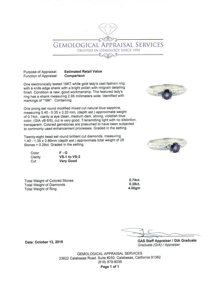 One electronically tested 18KT white gold lady's cast fashion ring with a knife edge shank with a bright polish with milgrain detailing finish. The featured lady's ring has a shank measuring 2.95 millimeters wide. Identified with markings of '18K'. Condit