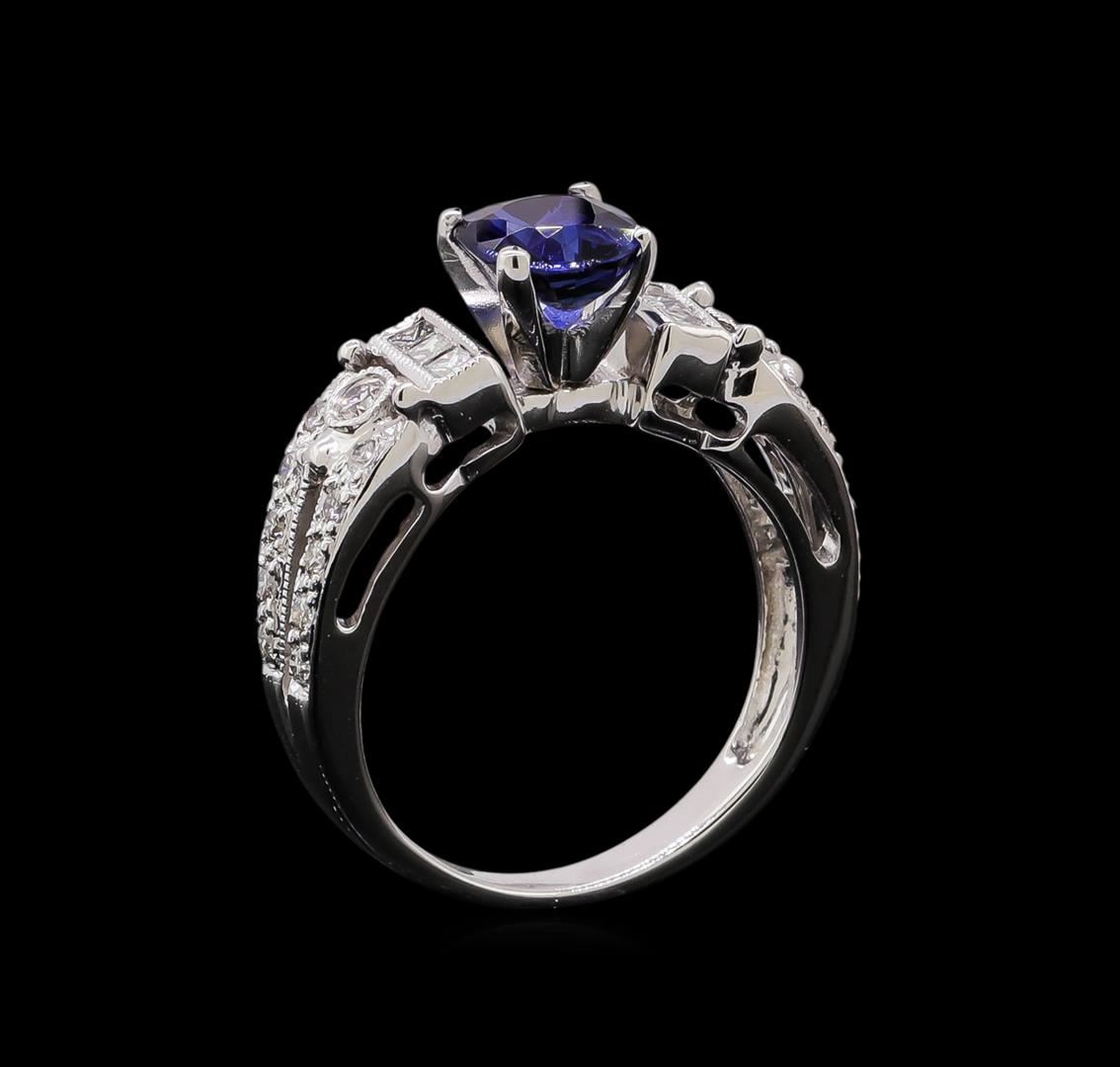 One ring : 14KT white gold weighing 4.45gm containing one sapphire with a total weight of 1.02ct and diamonds weighing 0.3ctw.
