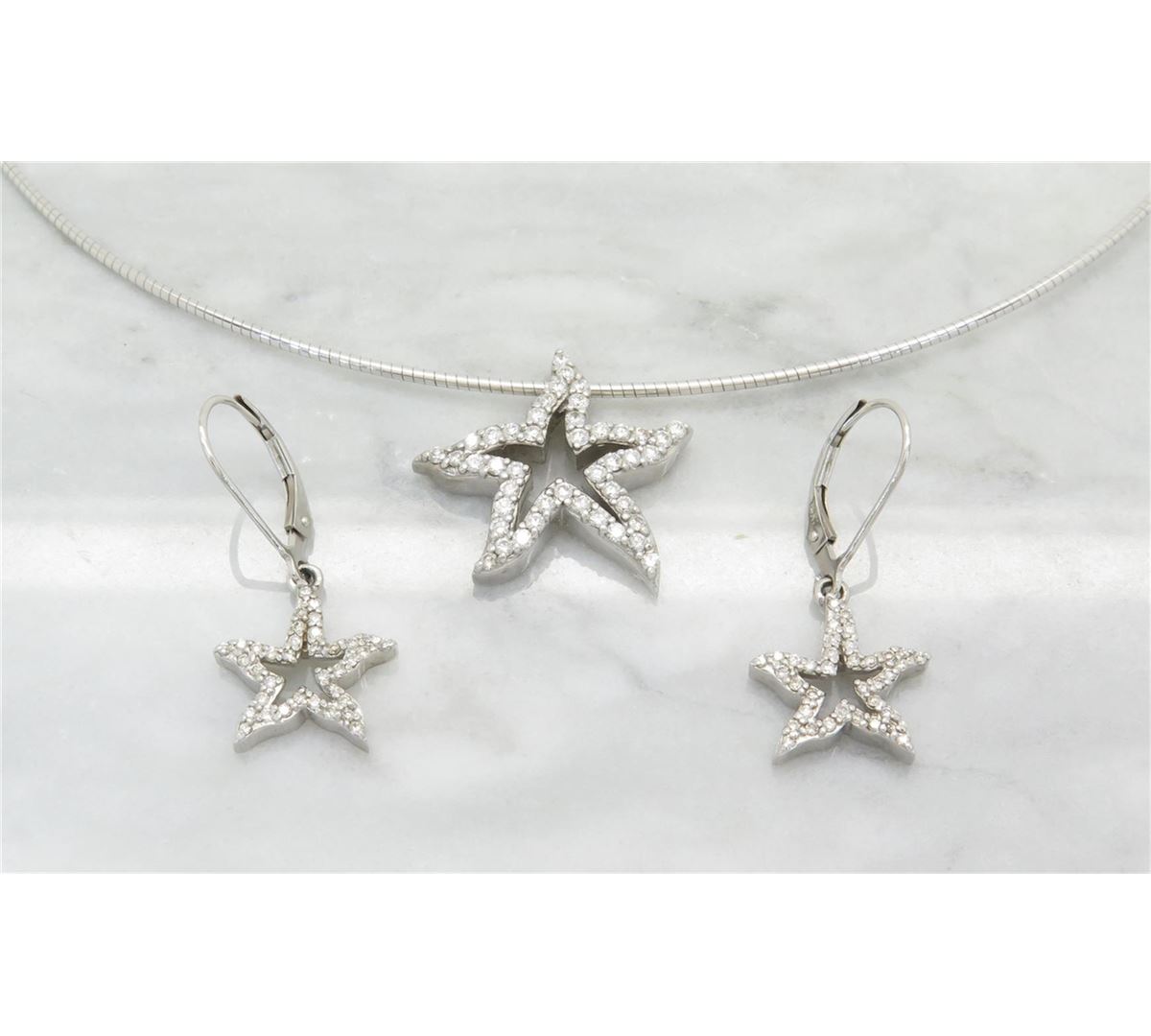 One tested 14K white gold diamond necklace and earrings set. Containing: 116 Round Brilliant Cut Diamonds. Approximate total diamond weight: 1.02CTW. Diamonds are graded in the mounting, unless otherwise stated. Weight: 15.0 grams, Size of chain: 18".