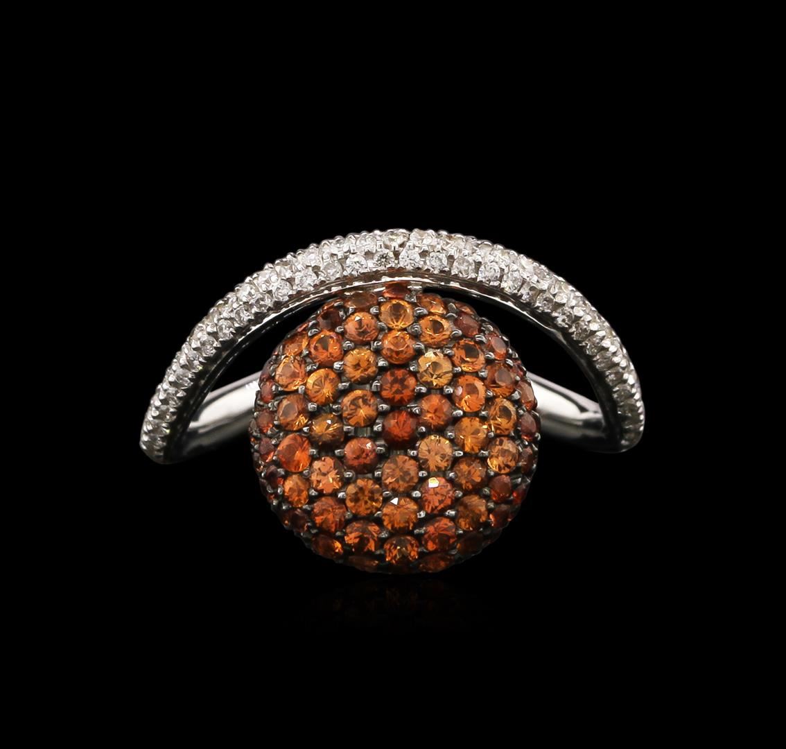 One ring featuring: 18KT white gold weighing 3.10 grams containing orange sapphires with a total weight of 1.02ct and 109 brilliant cut diamonds with a total weight of 0.34ct.