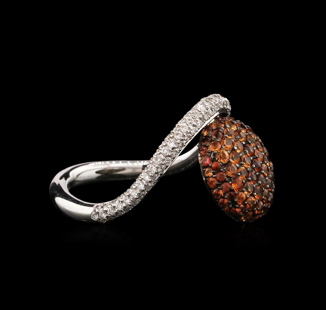 One ring featuring: 18KT white gold weighing 3.10 grams containing orange sapphires with a total weight of 1.02ct and 109 brilliant cut diamonds with a total weight of 0.34ct.