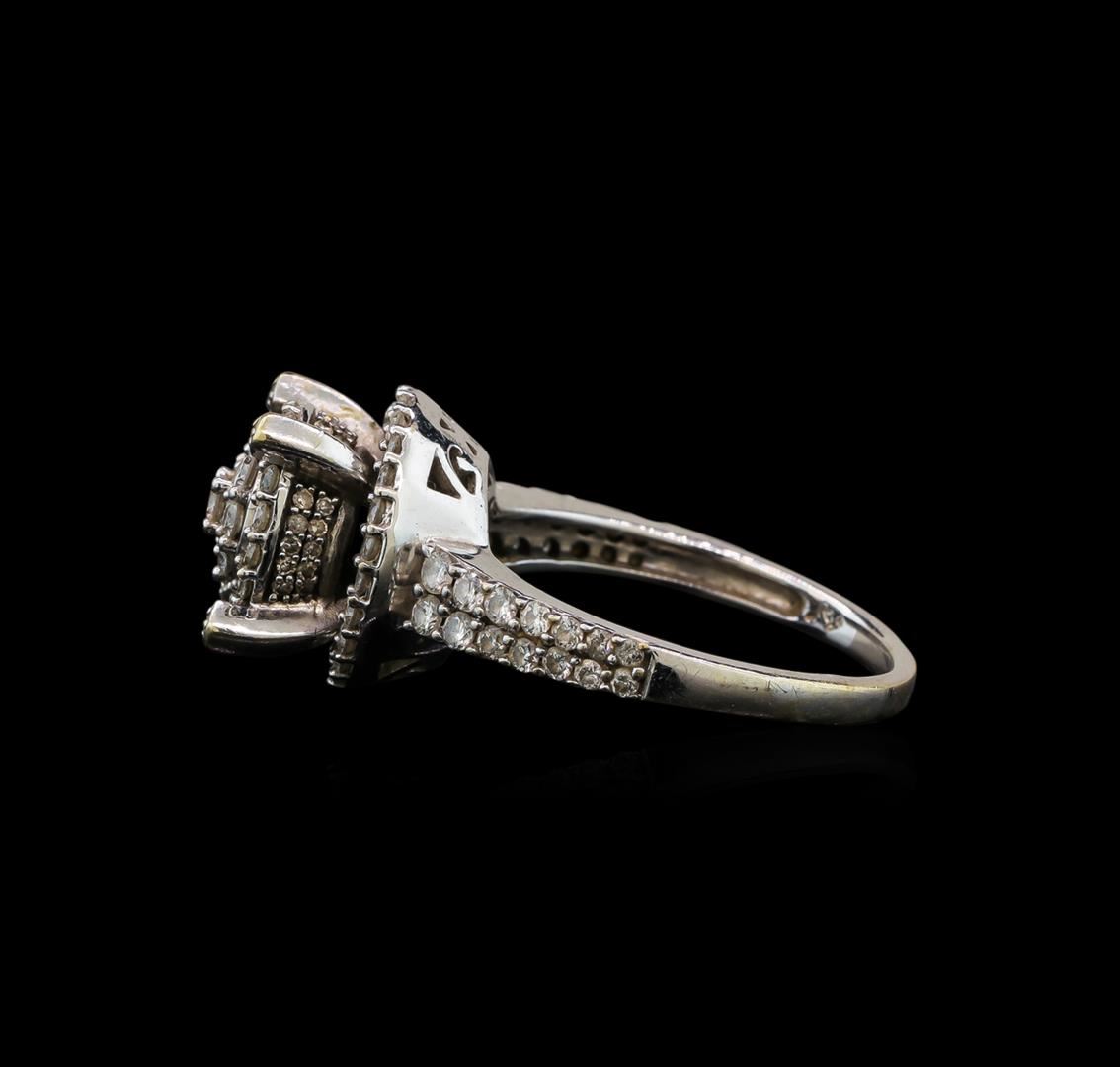 One electronically tested 14KT white gold ladies cast diamond ring. The ring features a cathedral set organized diamond cluster set within a diamond bezel supported by a lattice under gallery and diamond set shoulders, completed by a one and one-half millimeter wide band. Bright polish finish. Identified with markings of '14K'. Condition is good. Containing: Seventeen prong set round brilliant cut diamonds, measuring 1.90 - 1.60 x 1.05mm (depth est.) approximate total weight of 17 Stones = 0.43ct. Graded in the setting. Clarity SI-2 to I-1. Color: H - J Sixty-Two prong set round brilliant cut diamonds, measuring 1.30 - 1.10 x 0.72mm (depth est.) approximate total weight of 62 Stones = 0.50ct. Graded in the setting. Clarity SI-2 to I-1. Color: H - J Forty-Four bead set single cut diamonds, measuring 0.90 - 0.70 x 0.48mm (depth est.) approximate total weight of 44 Stones = 0.10ct. Graded in the setting. Clarity SI-1 to SI-2. Color: H - J. Total Weight of Diamonds 1.03ct.. Total Weight of Ring 5.60gm. AIG Appraised at $4,350.00.