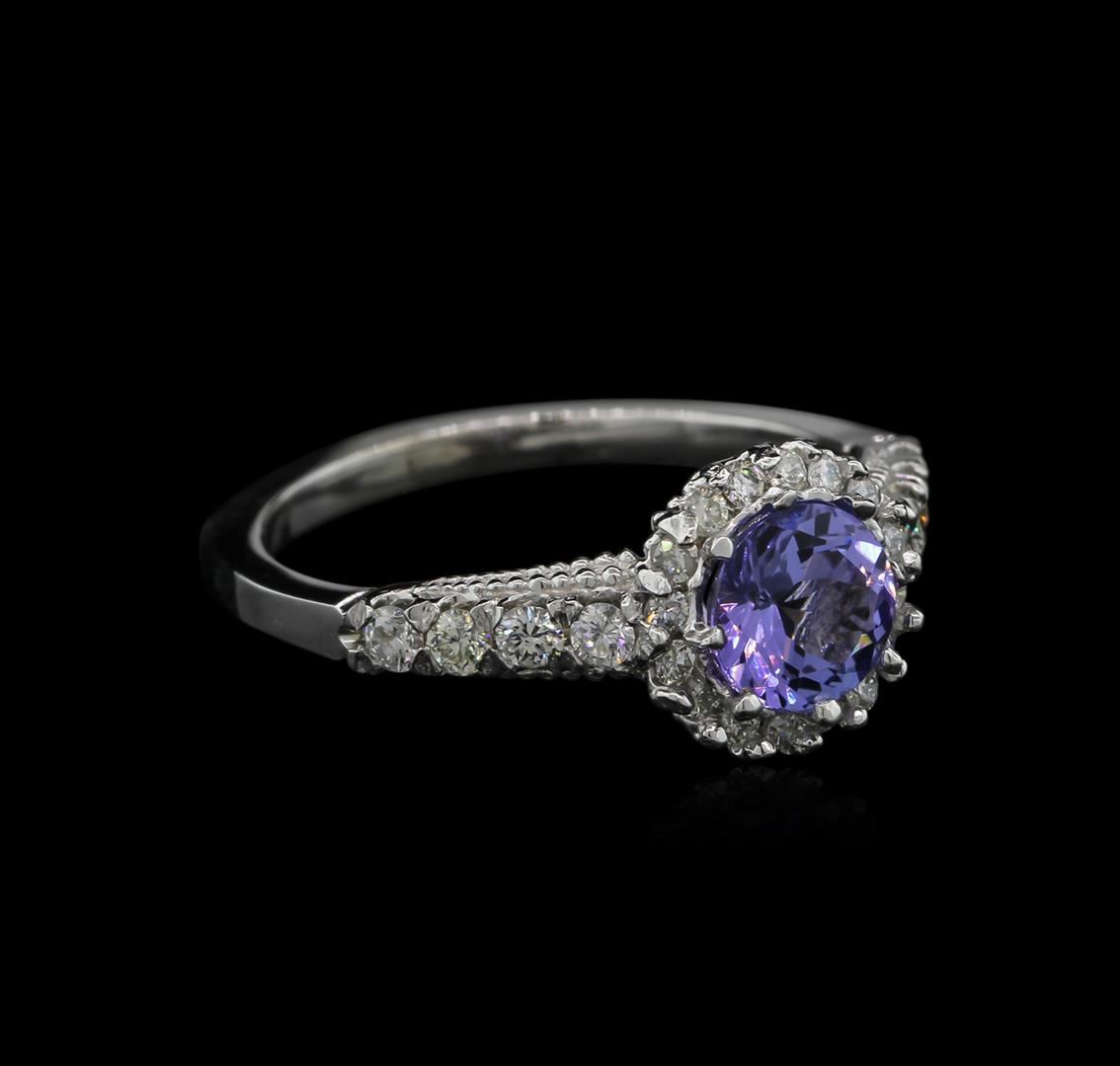 One ring featuring: 14KT white gold weighing 3.43 grams containing one tanzanite center stone with a total weight of 1.03ct and 20 diamonds with a total weight of 0.43ct.
