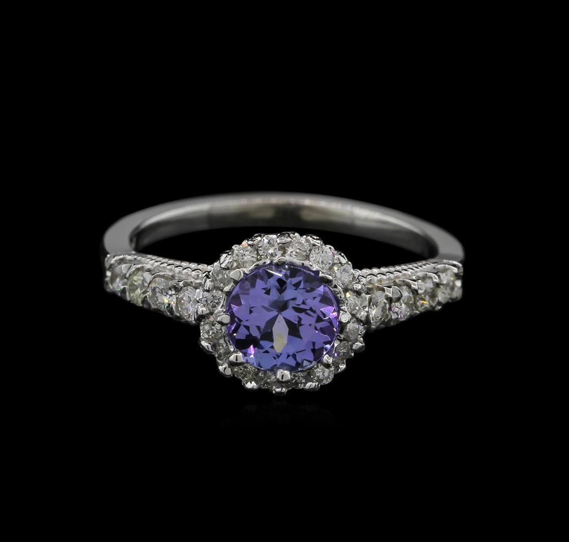 One ring featuring: 14KT white gold weighing 3.43 grams containing one tanzanite center stone with a total weight of 1.03ct and 20 diamonds with a total weight of 0.43ct.
