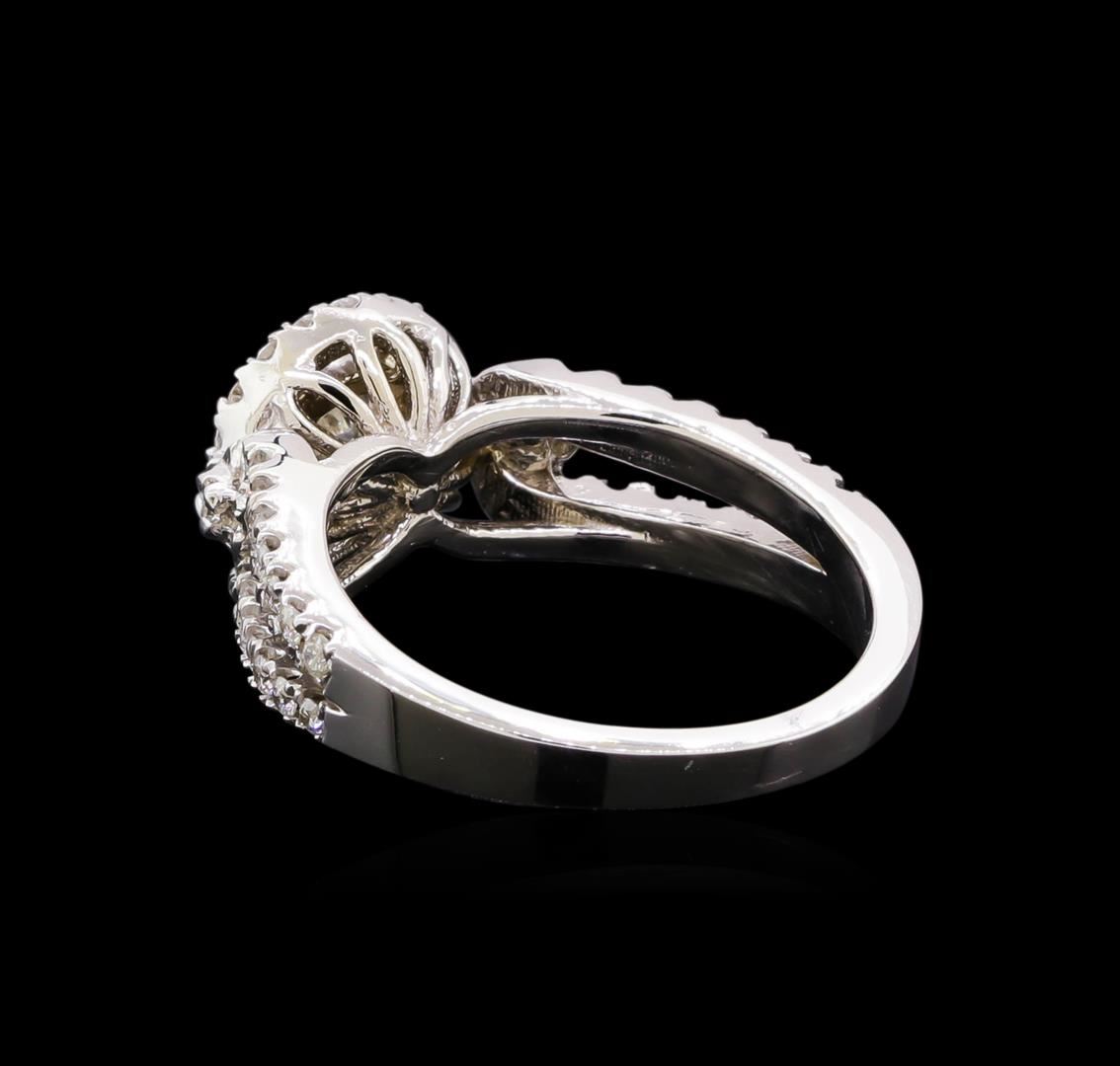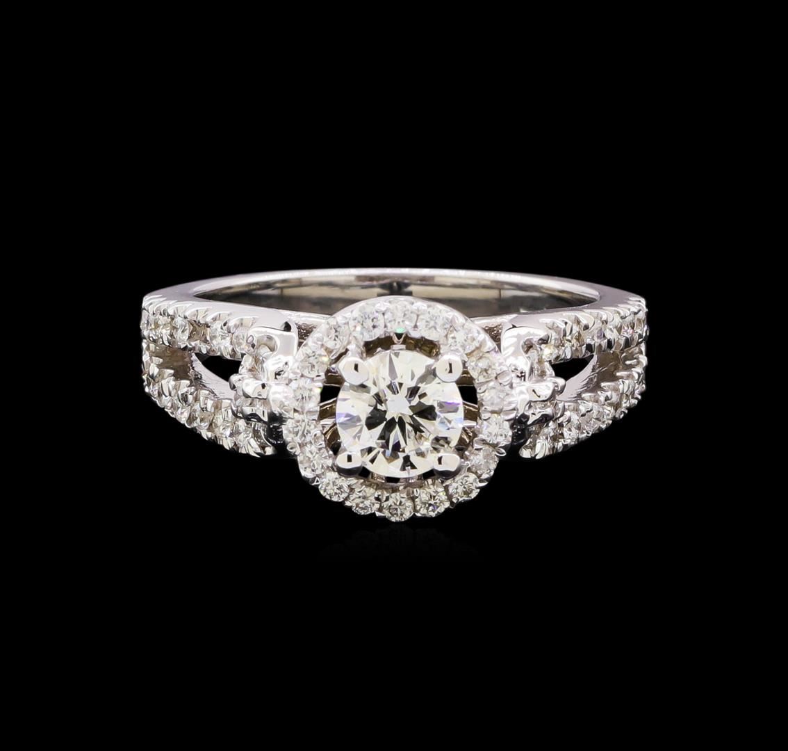 One electronically tested 14KT white gold lady's cast wedding ring with a basket halo with a bright polish finish. Featured lady's ring has a shank measuring 2.20 millimeters in width. Identified with markings of "14K". Condition is new, good workmanship. Containing: One prong set round brilliant cut diamond, measuring 5.14 - 5.11 x 3.18mm (depth est.) approximate weight of 0.52ct. Graded in the setting. Clarity: SI-2. Color: G. Cut Very Good Fifty-Six prong set round brilliant cut diamonds, measuring 1.40 - 1.30 x 0.84mm (depth est.) approximate total weight of 56 Stones = 0.52ct. Graded in the setting. Clarity: SI-1 to SI-2. Color: G - Good. Total Weight of Diamonds 1.04ct. Total Weight of Ring 5.50gm. GAS Appraised at $6,405.00.