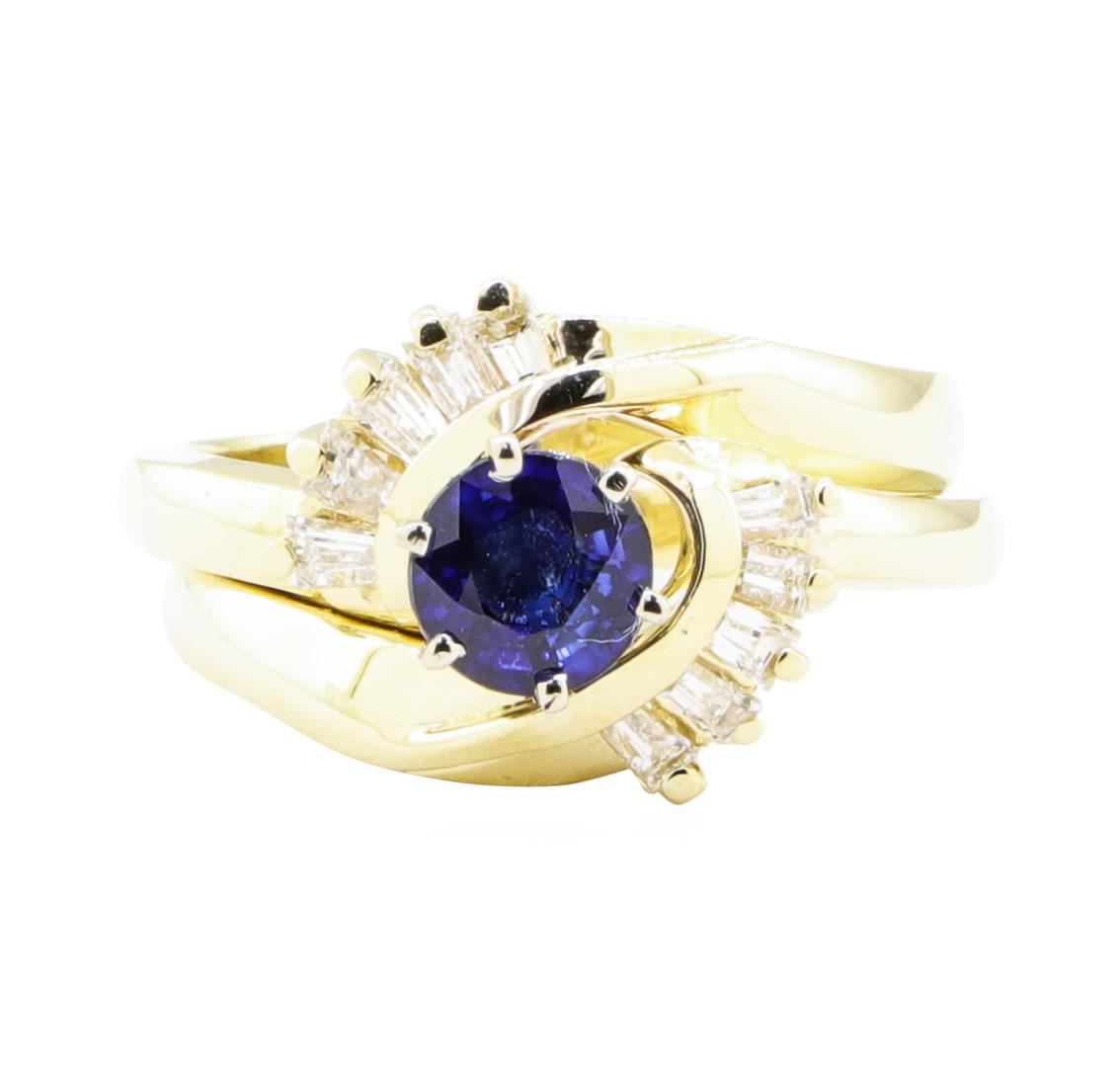 One set electronically tested 14KT yellow gold lady's combination cast & assembled fashion ring and band with a bypass swirl with a bright polish finish. The featured lady's ring has a double shank measuring 3.90 millimeters wide. Identified with markings