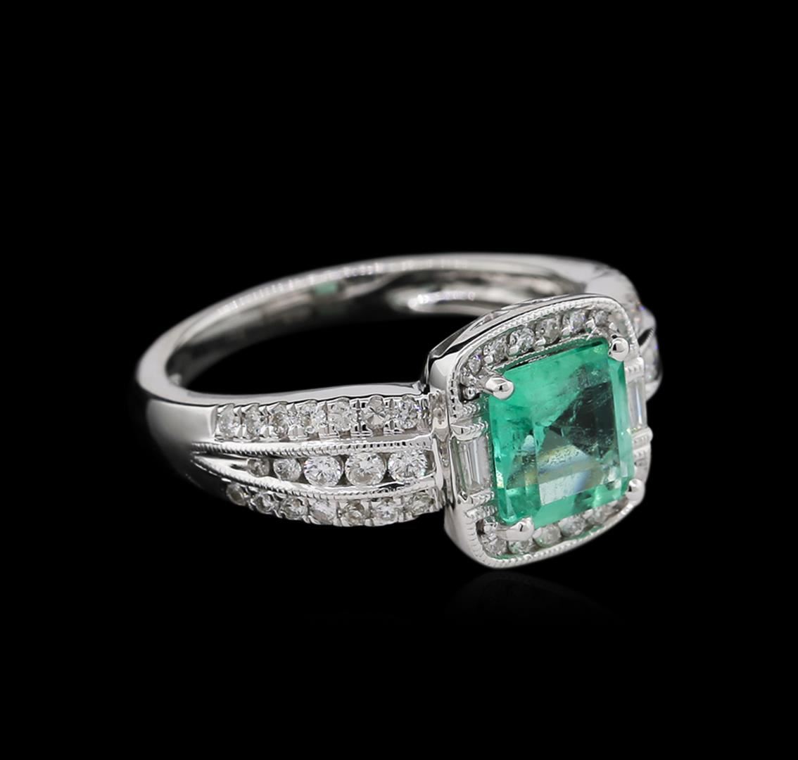 One ring featuring: 18KT white gold weighing 4.85 grams containing one emerald with a total weight of 1.04ct and diamonds with a total weight of 0.48ct.
