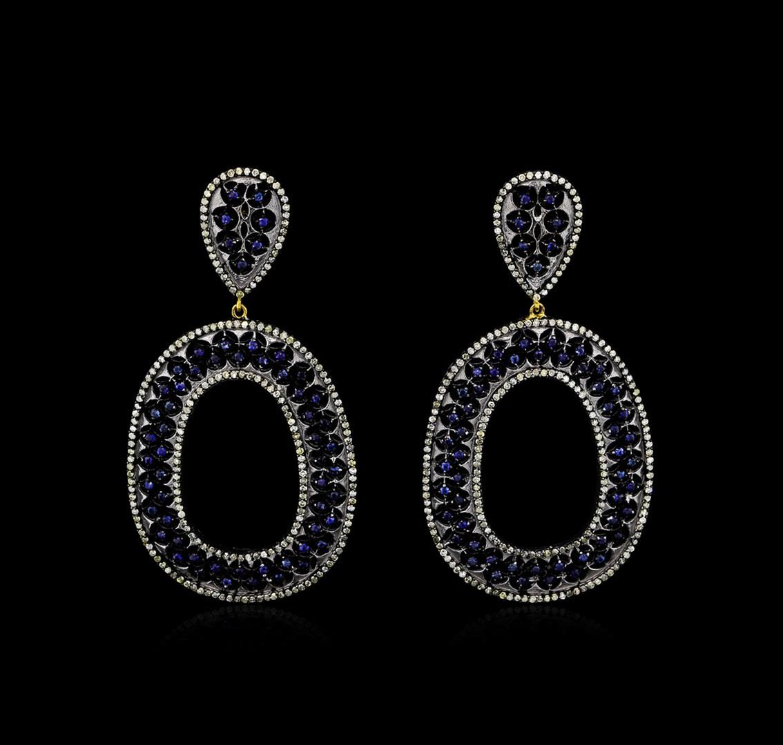 One pair of earrings featuring: 14KT white and yellow gold weighing 13.80 grams containing blue sapphires with a total weight of 1.04ct and diamonds with a total weight of 2.00ct.