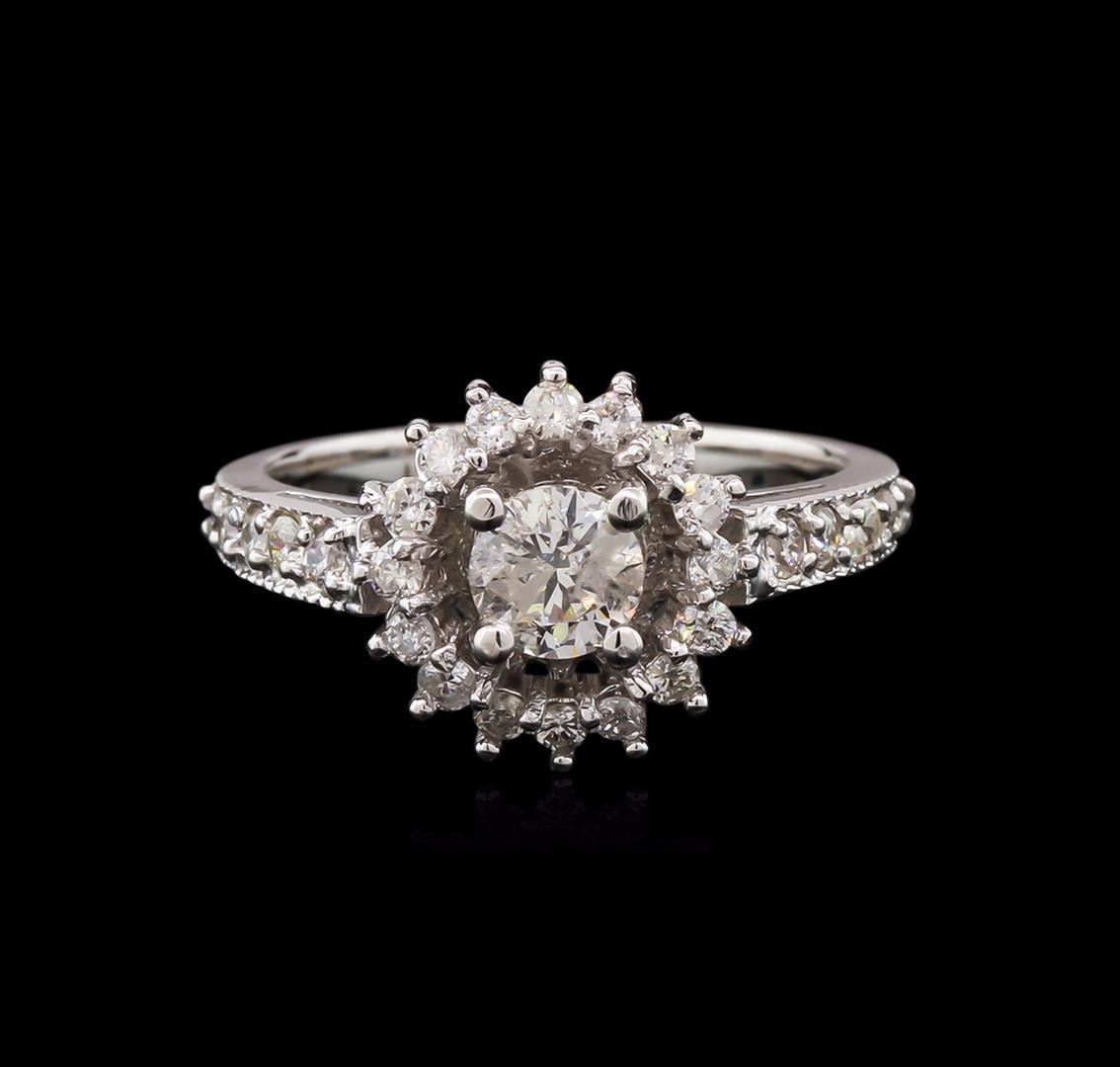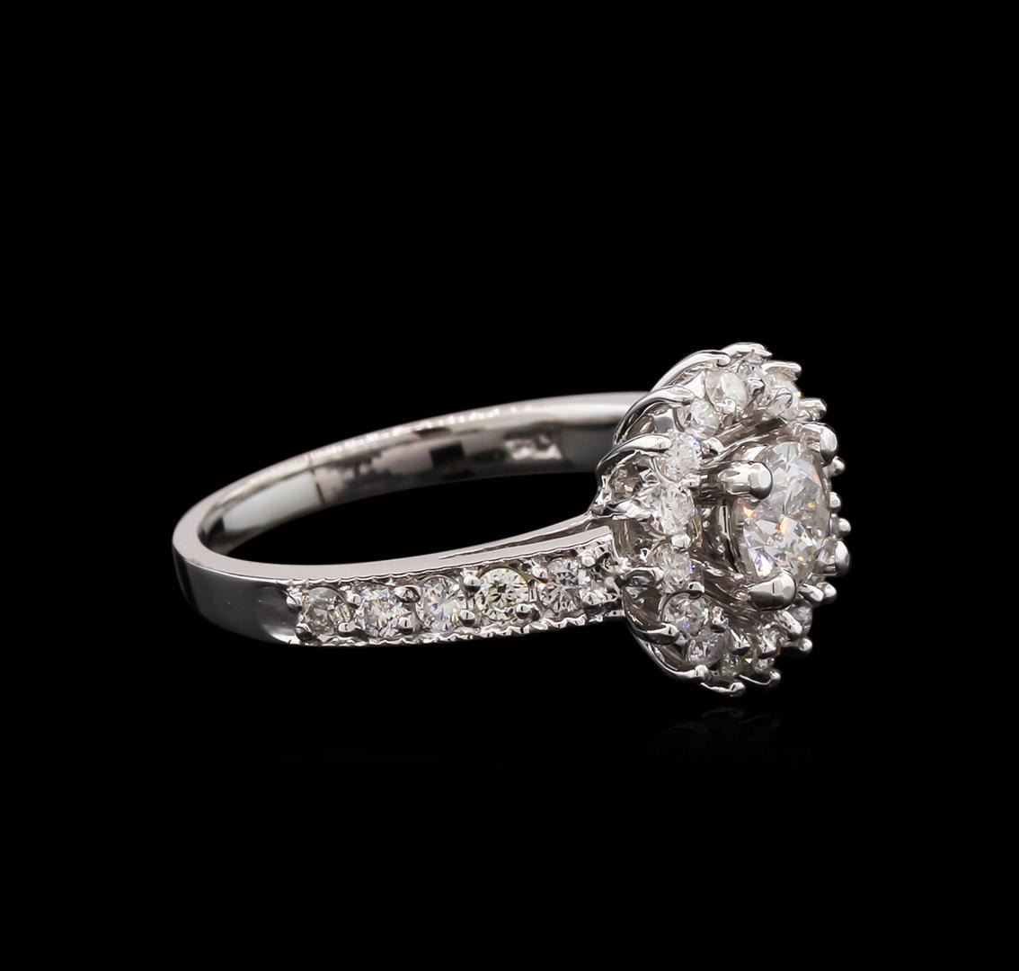One electronically tested 14KT white gold lady's combination cast & assembled wedding ring with a basket halo with a bright polish with milgrain detailing finish. The featured lady's ring has a shank measuring 2.08 millimeters wide. Identified with markin GAS Appraised at $4,875.00.