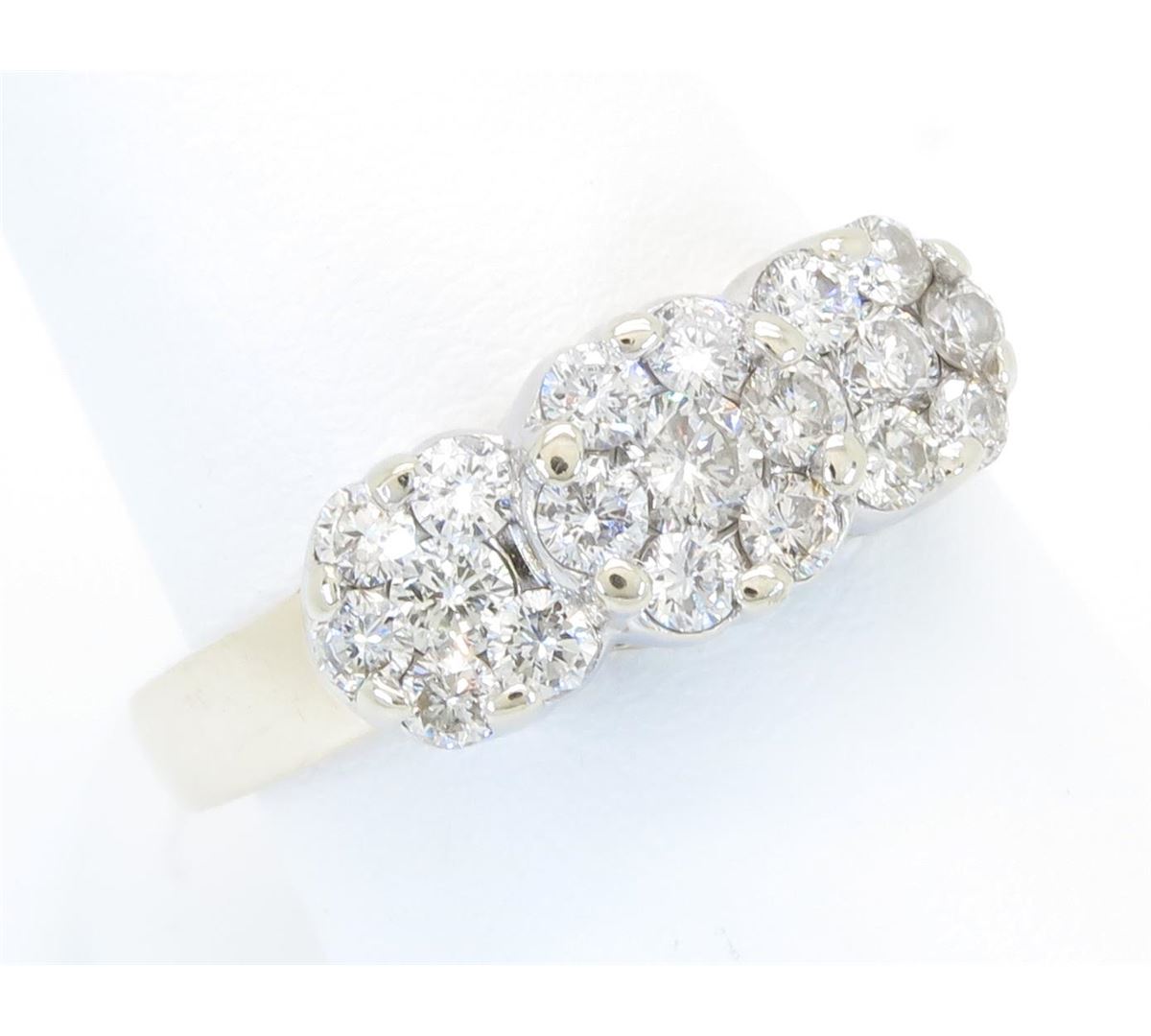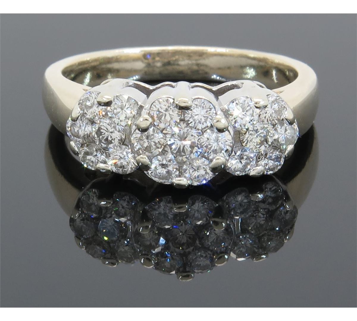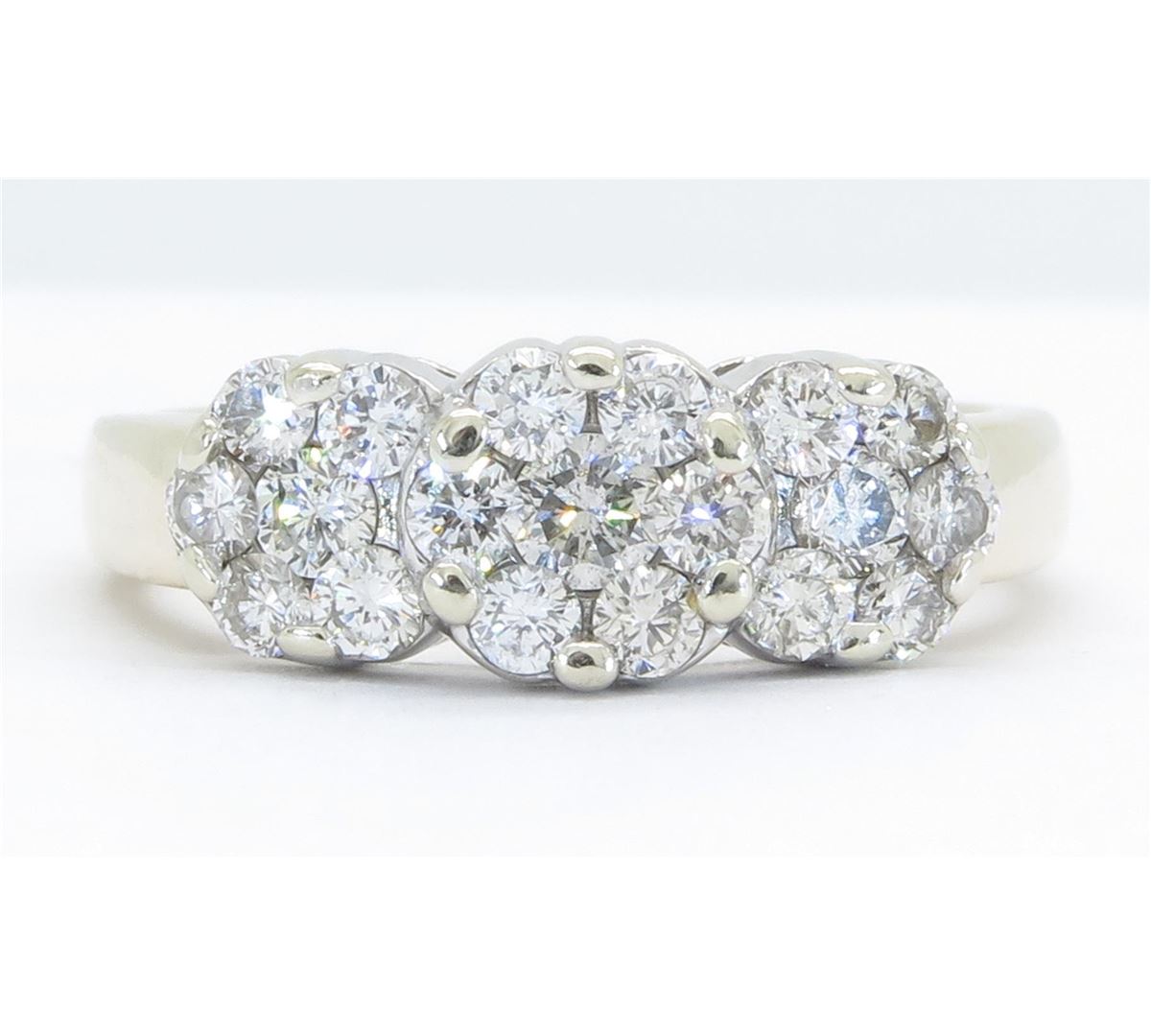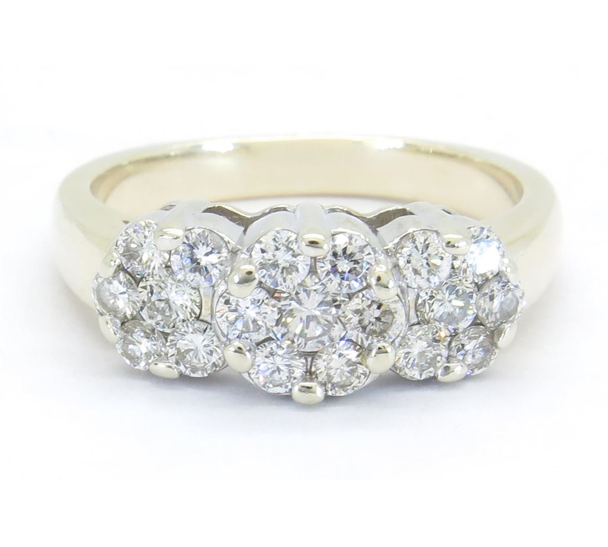 One tested 14K gold diamond ring. Containing: 19 Round Brilliant Cut Diamonds. Clarity: I-SI, Color: G-H. Approximate total diamond weight: 1.05CTW. Diamonds are graded in the mounting, unless otherwise stated. Weight of ring: 6.1 grams. Size: 7.0.