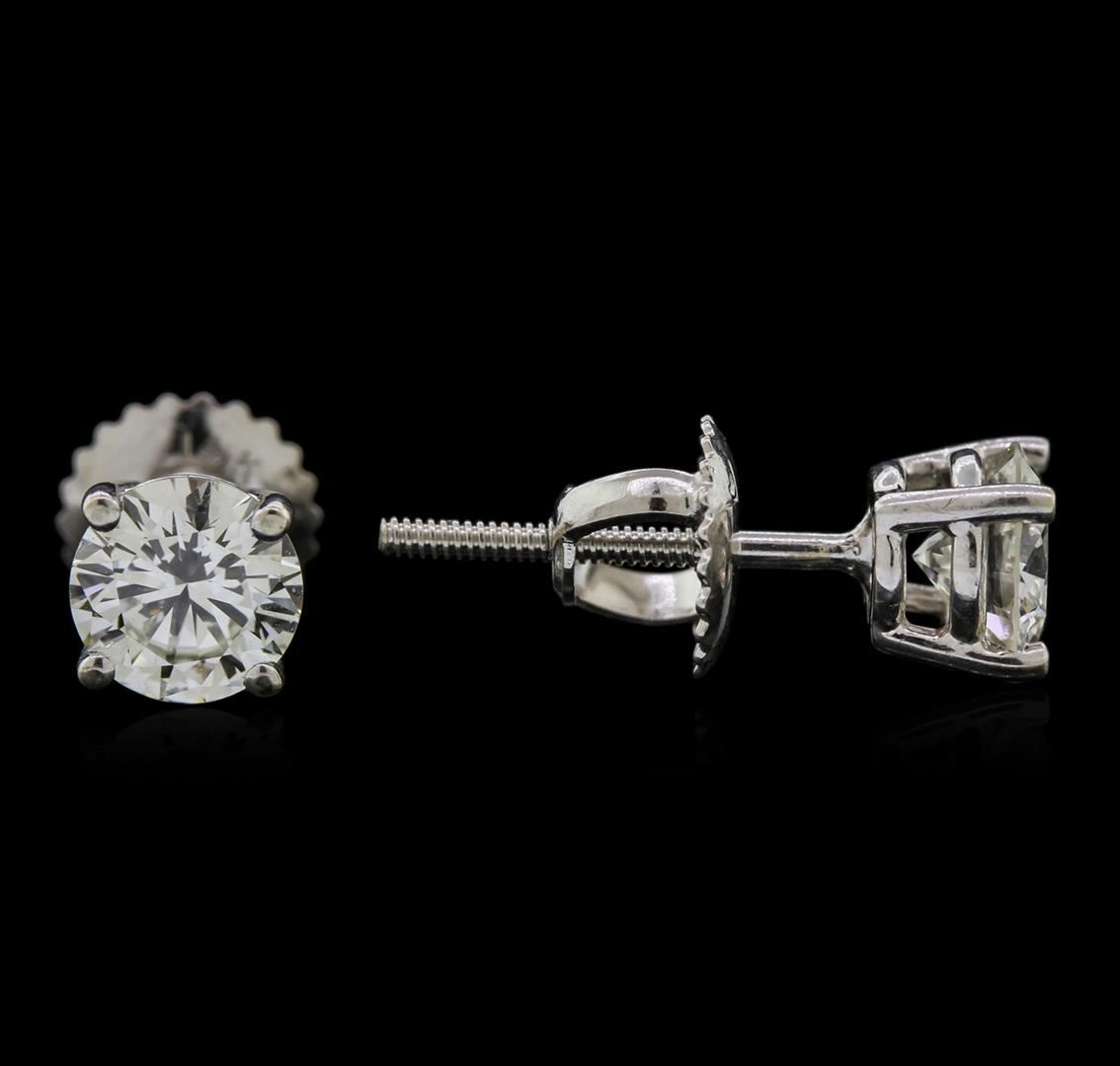 One pair of stud earrings featuring: 14KT white gold weighing 1.36 grams containing prong set round diamonds with a total weight of 1.05ct.