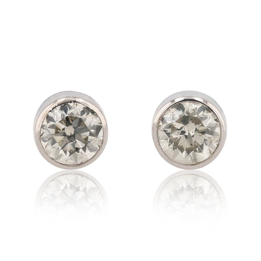 One pair 14K Gold Diamond Stud Earrings One polished, stamped, and tested pair of 14K white gold earrings mounted with 2 genuine round diamonds weighing approximately 1.06 carats. This item weighs 1.4 grams, condition is new, excellent workmanship. MAIN GEMSTONES Identity: Natural Diamond Shape: Round Cutting Style: Brilliant Cut Quantity: 2 Diamonds Average Diameter: 5 mm Total Weight: 1.06 carats Color Grade: H Clarity Grade: SI-2 Polish: Very Good Symmetry: Very Good Refractive Index: 2.417 Specific Gravity: 3.52 +/-0.01 Hardness: 10 TOTAL DIAMOND WEIGHT: 1.06 cts WEIGHT OF ITEM: 1.4 grams GOLD CONTENT: 14K White Gold