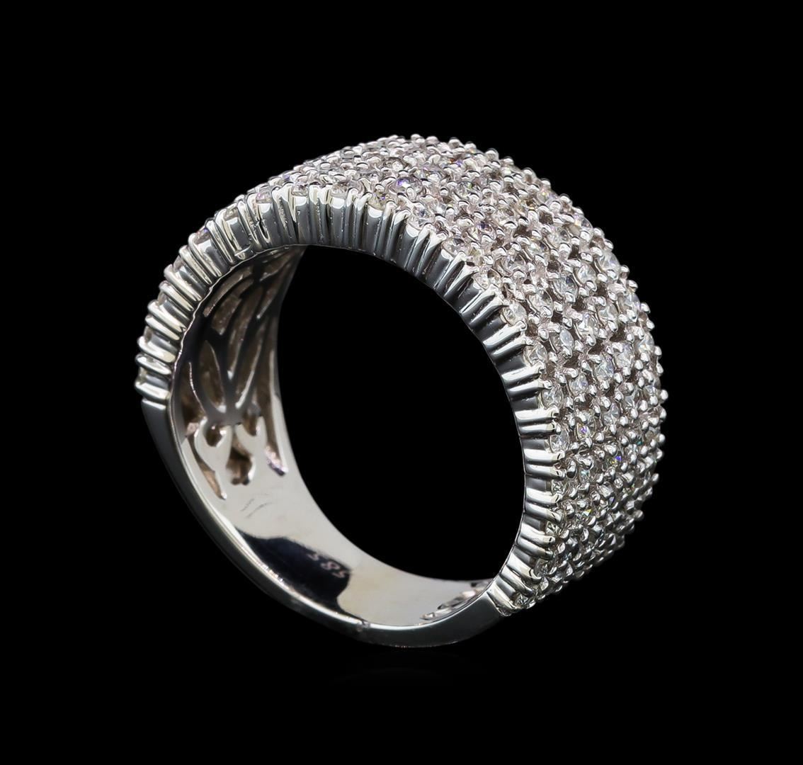 One electronically tested 14KT white gold lady's cast fashion ring with a five row wide band with a bright polish finish. The featured lady's ring has a shank measuring 6.38 millimeters wide. Identified with markings of '585'. Condition is new, good workmanship. Containing: One Hundred Five prong set round brilliant cut diamonds, measuring 1.45 - 1.35 x 0.85mm (depth est.) approximate total weight of 105 Stones = 1.07ct. Graded in the setting. Clarity SI-1 to I-1. Color: G - I Cut Good. Total Weight of Diamonds 1.07ct.. Total Weight of Ring 7.60gm. GAS Appraised.