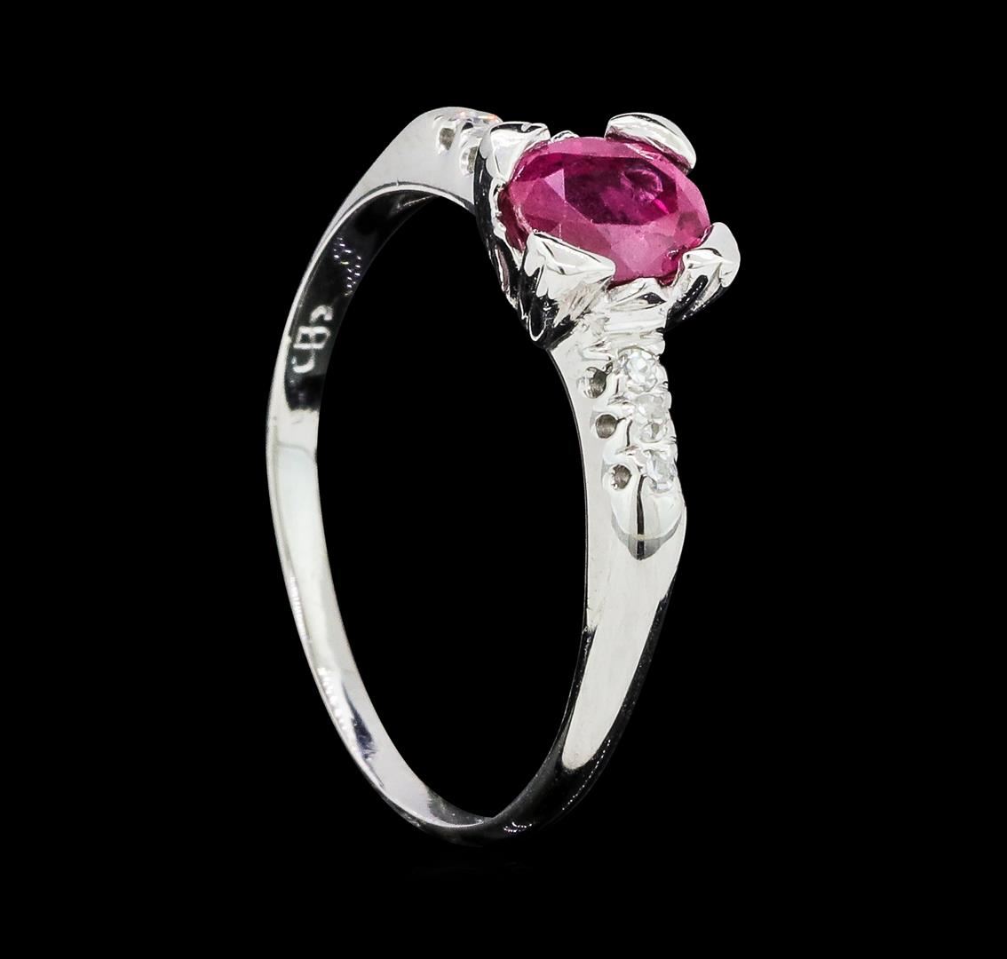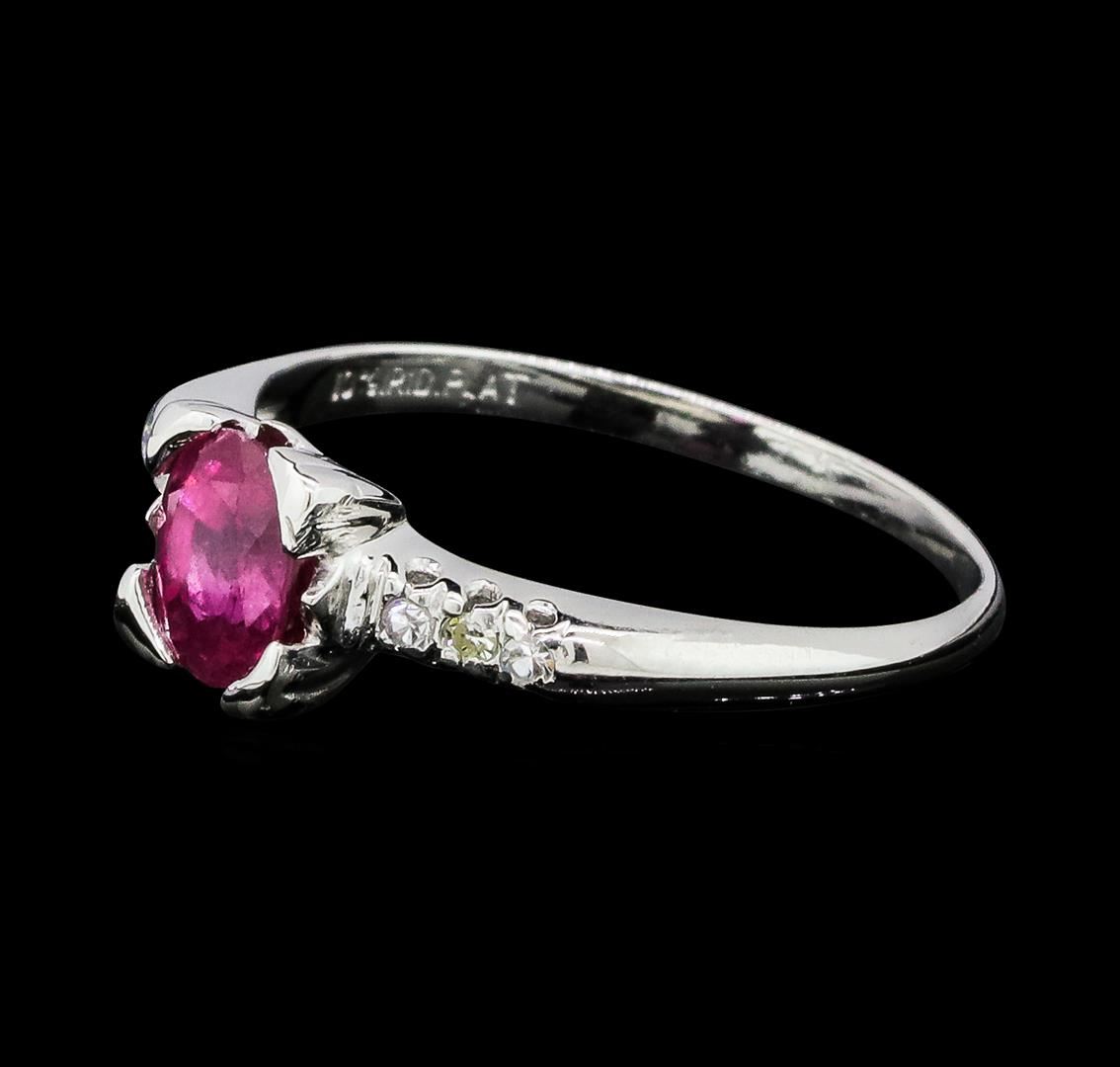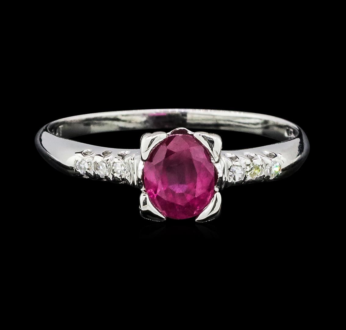 One lady's ring featuring: platinum weighing 3.3 grams containing one ruby weighing 1.07ct and diamonds weighing .06ctw.