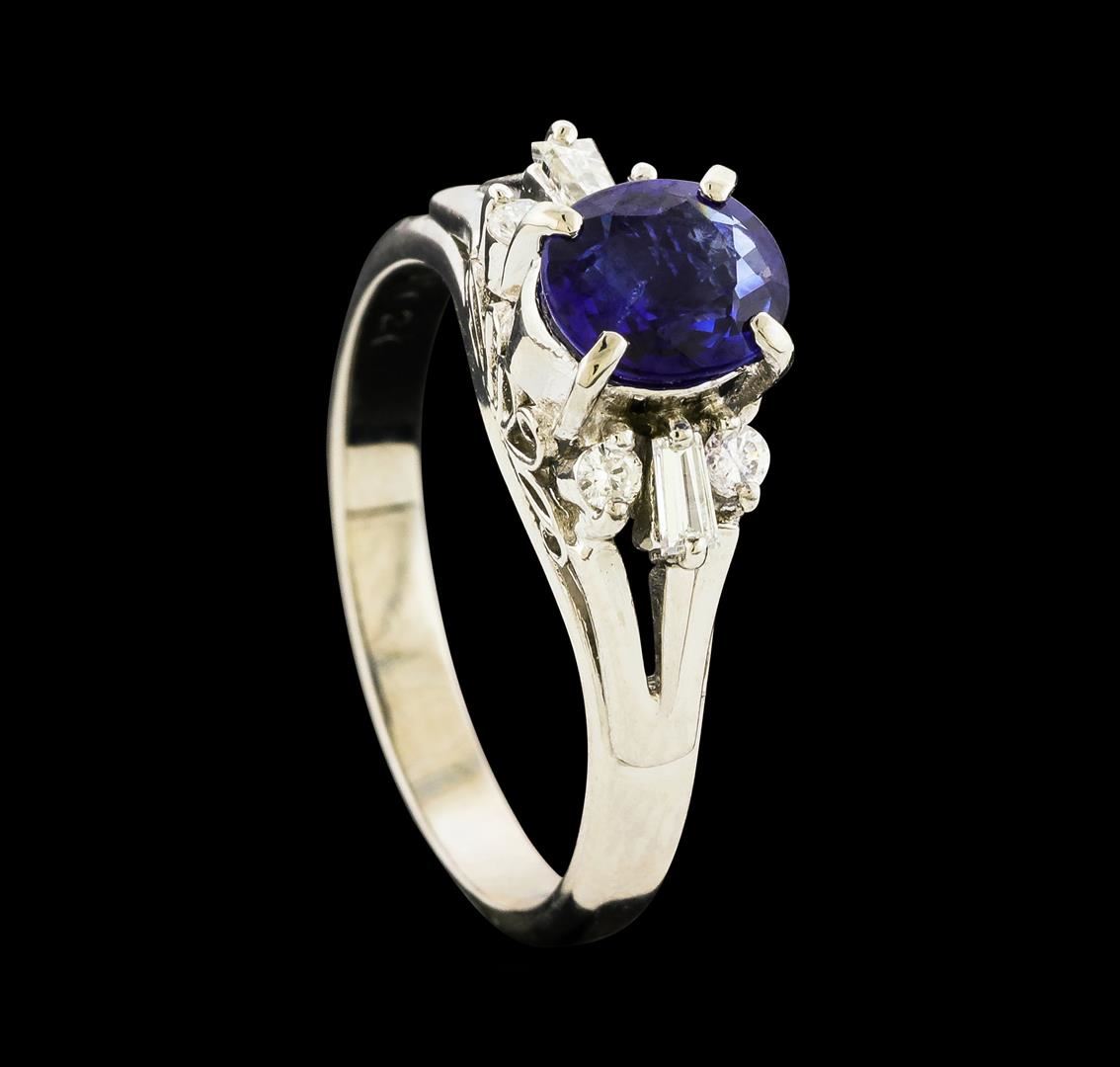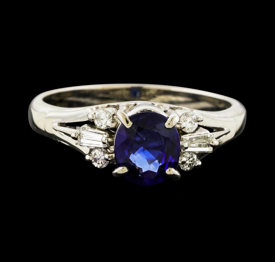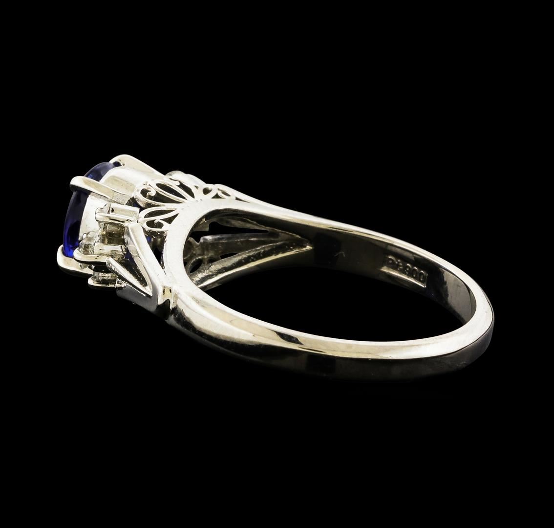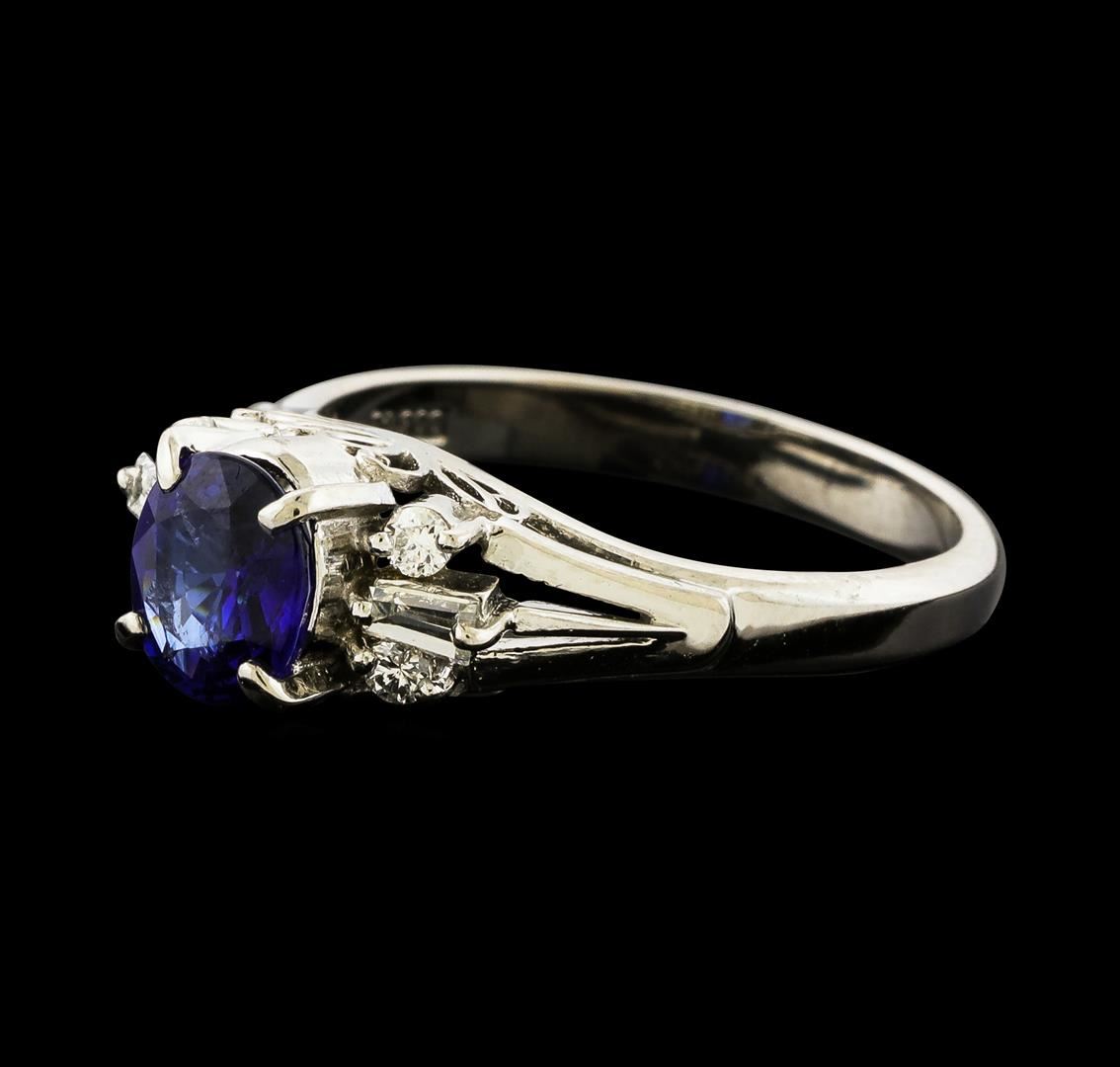 One ring featuring: Platinum containing Sapphire with a total weight of 1.07ct and Diamonds with a total weight of 0.20ct. Total Weight of Ring: 5.4 grams.