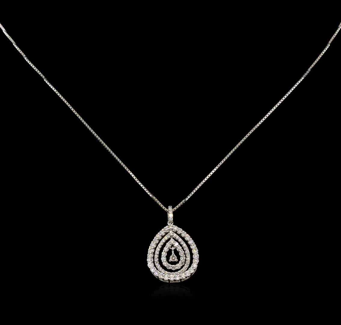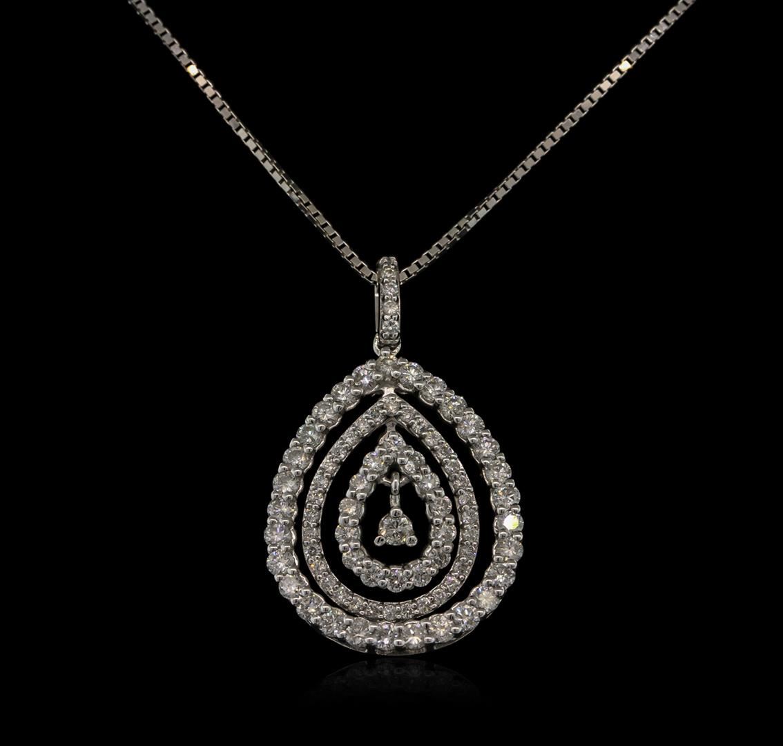 One pendant with chain featuring: 18KT white gold weighing 3.60 grams containing prong set round diamonds with a total weight of 1.07ct.
