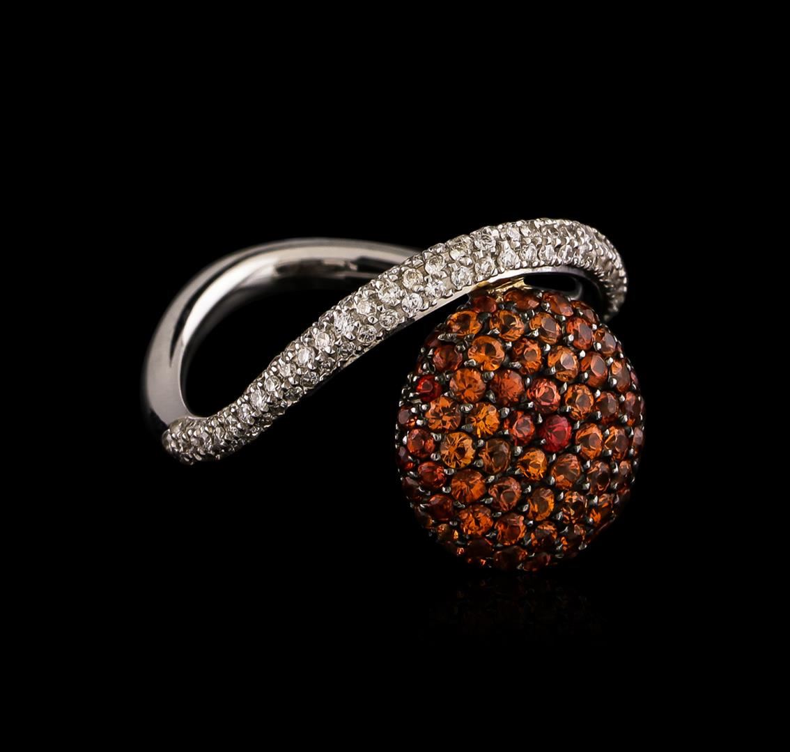 One ring featuring: 18KT white gold weighing 4.70 grams containing orange sapphires with an approximate total weight of 1.07ct and diamonds with an approximate total weight of 0.33ct.