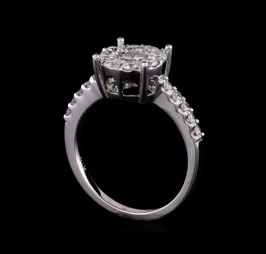 One electronically tested 14KT white gold lady's cast wedding ring with a cathedral basket halo with a bright polish finish. The featured lady's ring has a shank measuring 1.68 millimeters in width. Identified with markings of "K14". Condition is new, good workmanship. Containing: One prong set round brilliant cut diamond, measuring 4.70 - 4.60 x 3.03mm (depth est.) approximate weight of 0.40ct. Graded in the setting. Clarity: I-1. Color: I. Cut Good Ten prong set round brilliant cut diamonds, measuring 1.70 - 1.65 x 1.04mm (depth est.) approximate total weight of 10 Stones = 0.18ct. Graded in the setting. Clarity: VS-2 to SI-2. Color: G - Good Eight prong set round brilliant cut diamonds, measuring 2.60 - 2.50 x 1.59mm (depth est.) approximate total weight of 8 Stones = 0.50ct. Graded in the setting. Clarity: SI-1 to SI-2. Color: G - Good. Total Weight of Diamonds 1.08ct. Total Weight of Ring 3.70gm. GAS Appraised at $4,330.00.