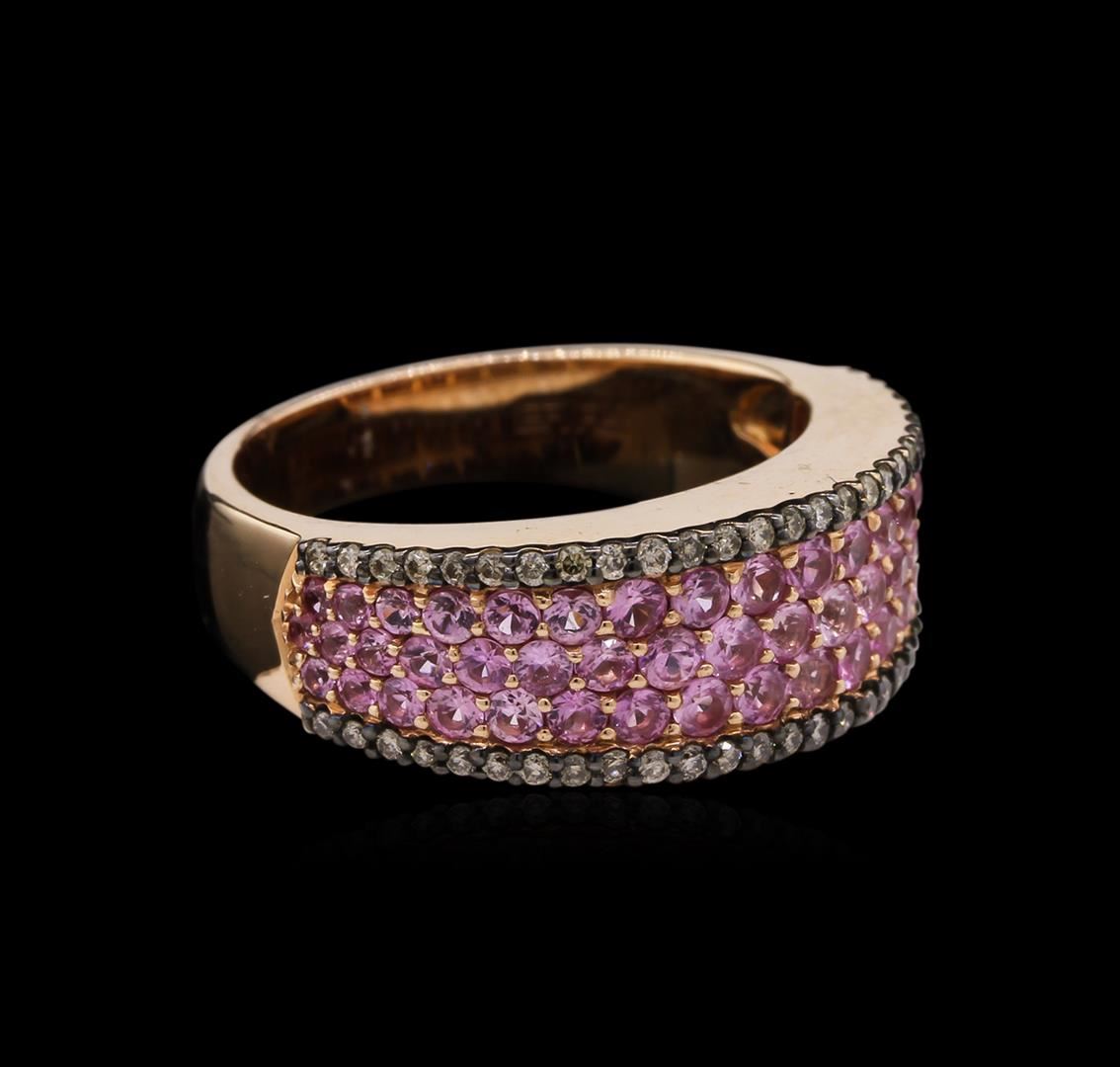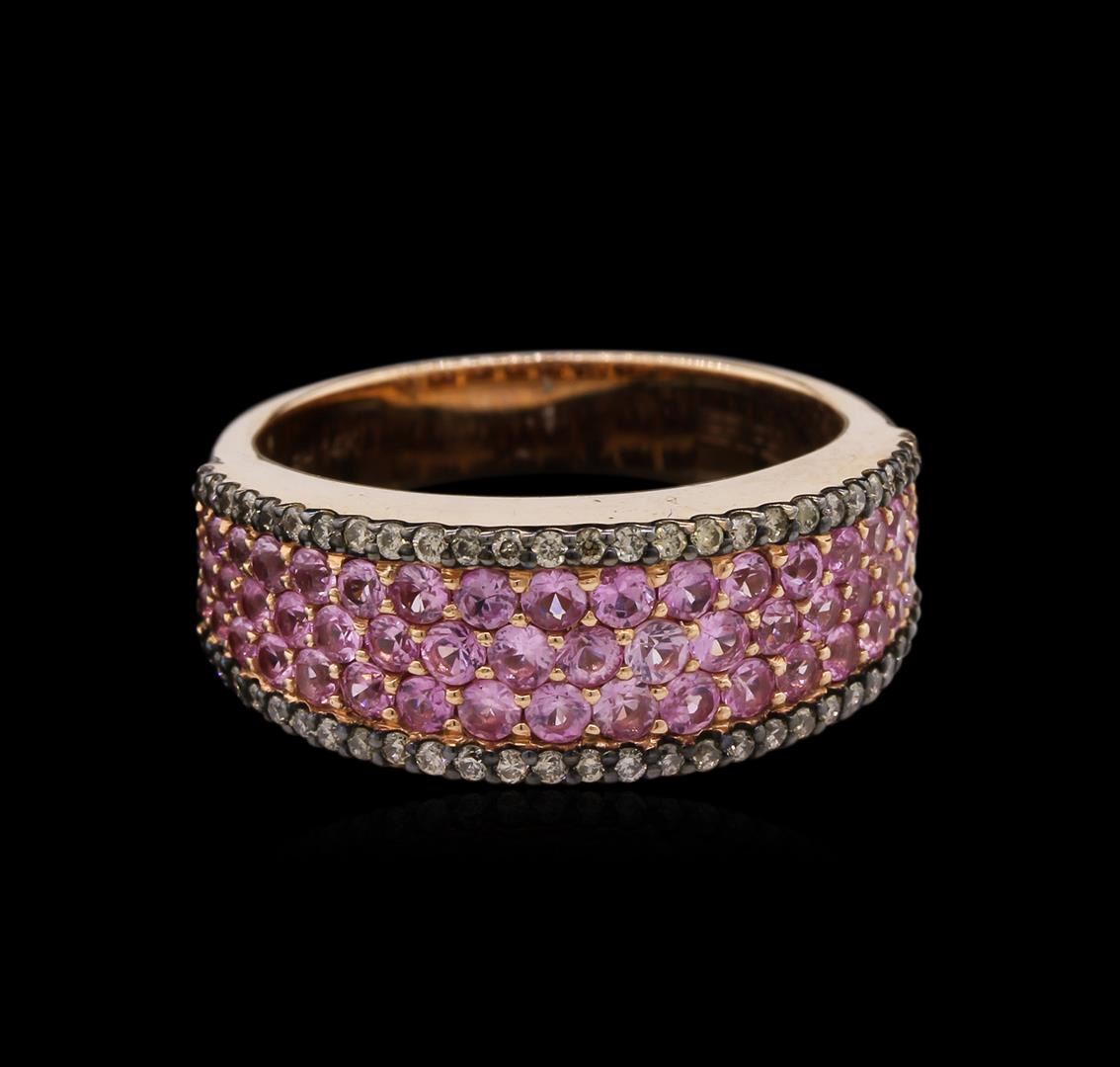 One ring featuring: 14KT rose gold weighing 6.90 grams containing pink sapphires with a total weight of 1.08ct and brown diamonds with a total weight of 0.26ct.