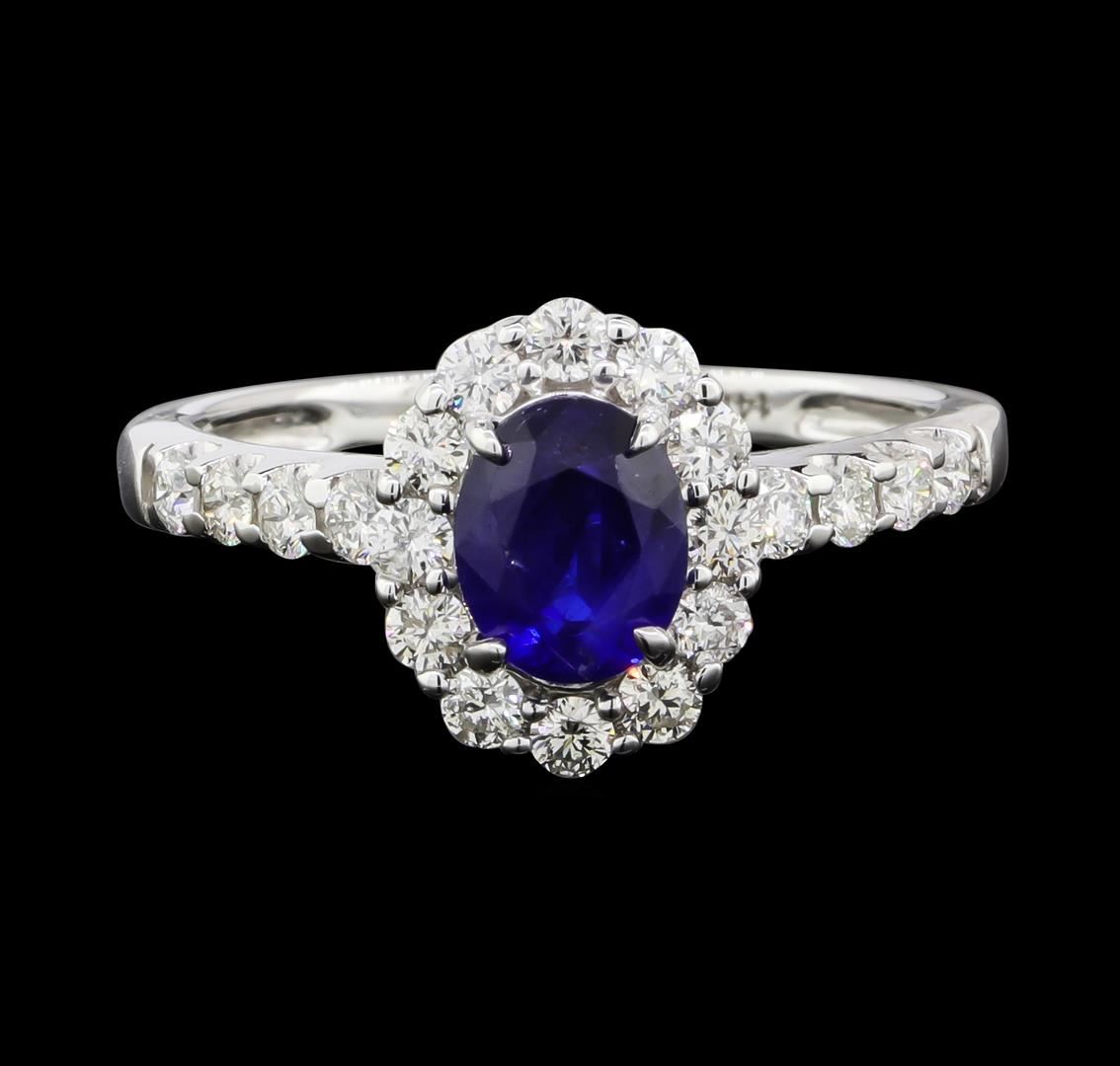One ring featuring: 14KT white gold weighing 3.00 grams containing one sapphire weighing 1.08ct and diamonds weighing 0.63ctw.