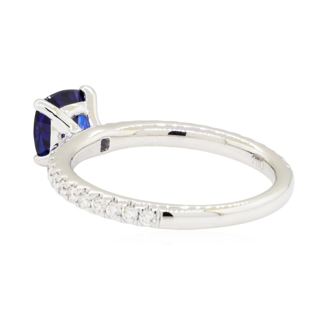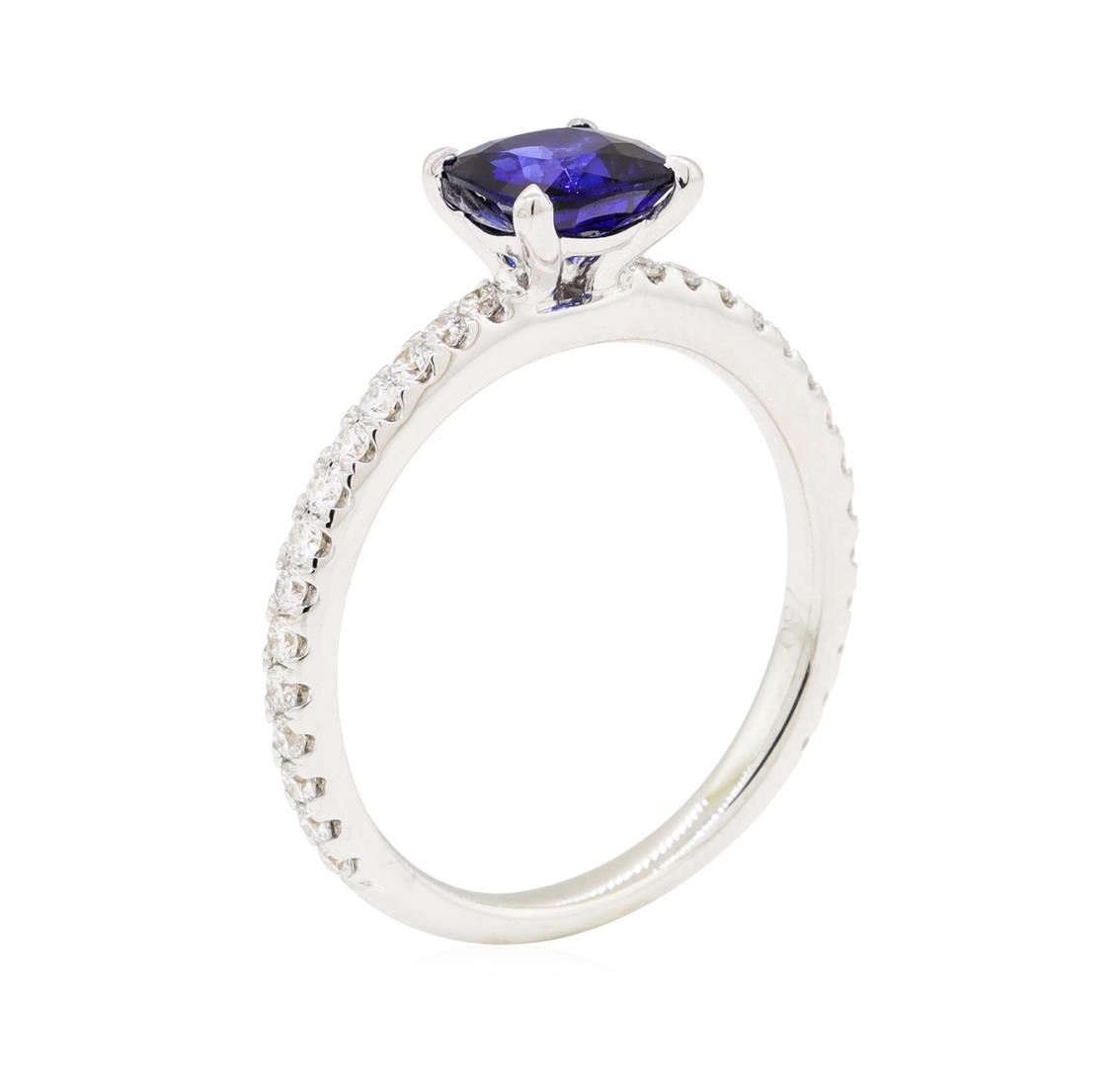 One lady's ring featuring: 18KT white gold weighing 3.3 grams containing one sapphire weighing 1.08ct and diamonds weighing 0.35ctw.