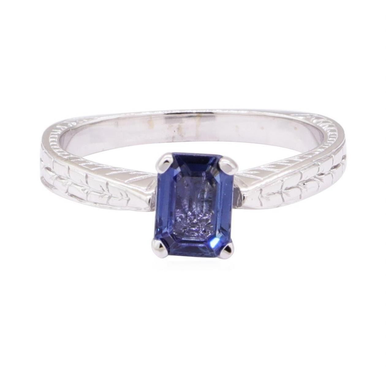 One 1.09ct Blue Sapphire Solitaire Ring - 14KT White Gold.