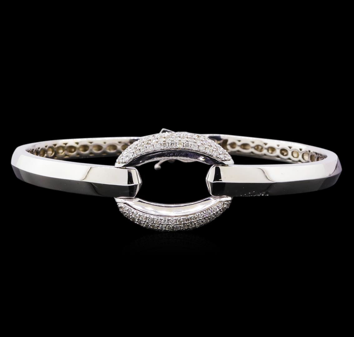 One electronically tested 14KT white gold lady's combination cast & assembled fashion bracelet with a tongue clasp with foldover safety with a bright polish finish. The featured lady's bracelet measures 7 inches in length. Identified with markings of "K14". Condition is new, good workmanship. Containing: Twenty prong set round brilliant cut diamonds, measuring 1.20 - 1.15 x 0.73mm (depth est.) approximate total weight of 20 Stones = 0.12ct. Graded in the setting. Clarity: SI-1 to SI-2. Color: G - Good One Hundred prong set round brilliant cut diamonds, measuring 1.40 - 1.35 x 0.84mm (depth est.) approximate total weight of 100 Stones = 0.97ct. Graded in the setting. Clarity: SI-1 to SI-2. Color: G - Good. Total Weight of Diamonds 1.09ct. Total Weight of Bracelet 22.80gm.